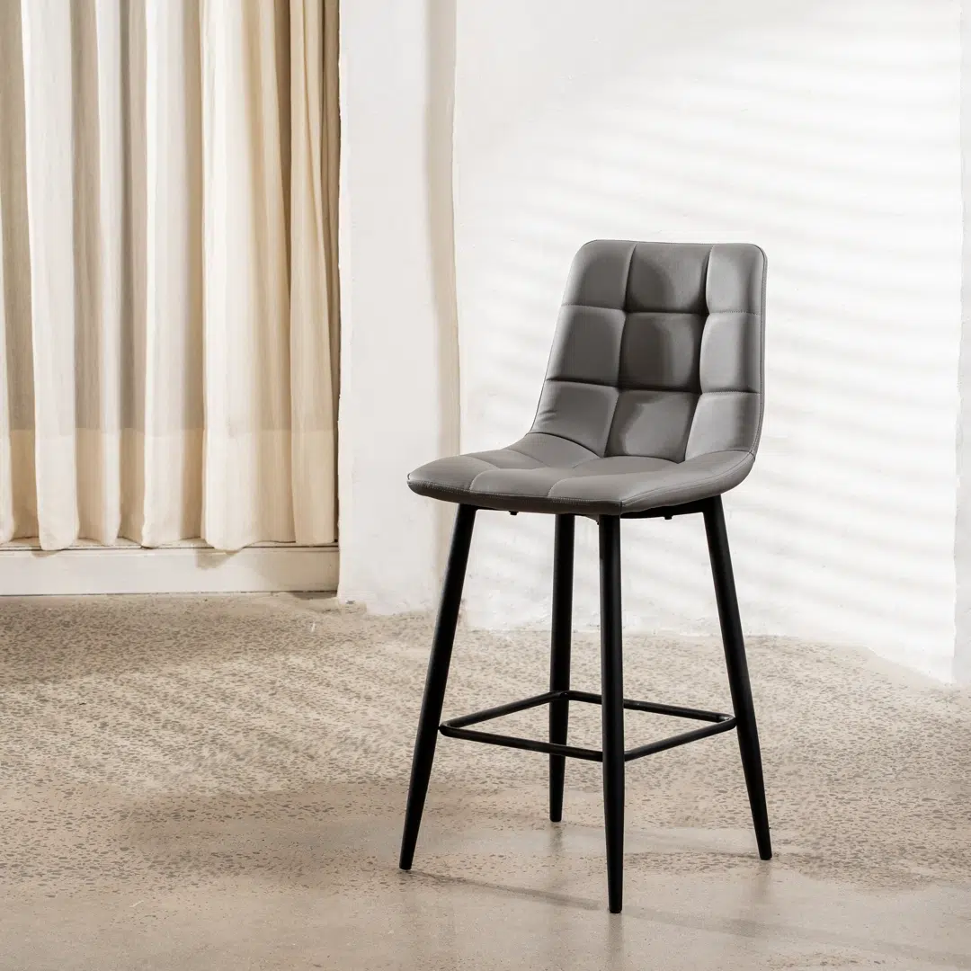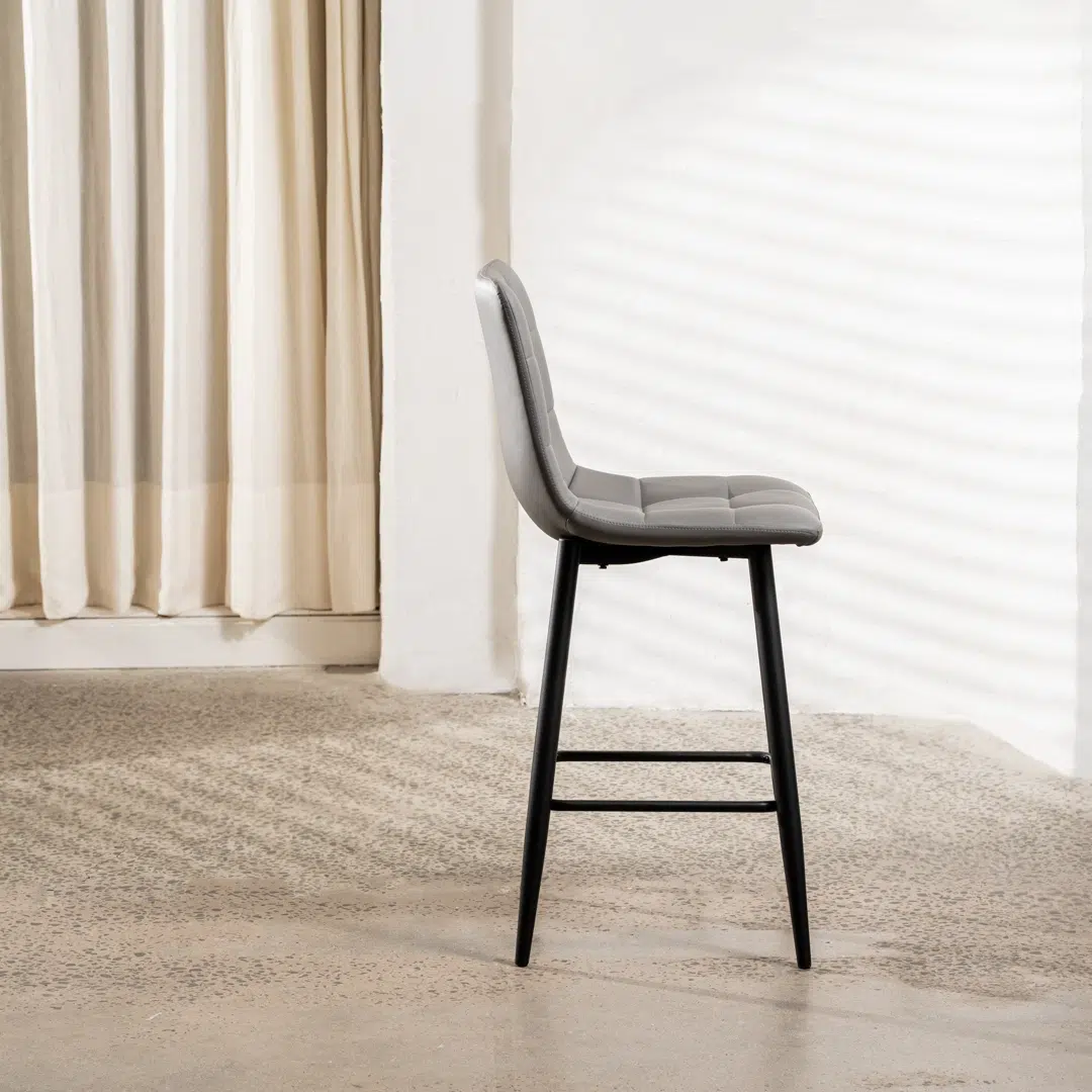 The wipe-clean faux leather surface simplifies upkeep—just use a dry cloth to remove spills or dust. The grey eco-leather finish adds a touch of sophistication, while the black powder-coated frame resists corrosion. Ideal for apartments, cafes, or modern homes where low-maintenance durability is key.
