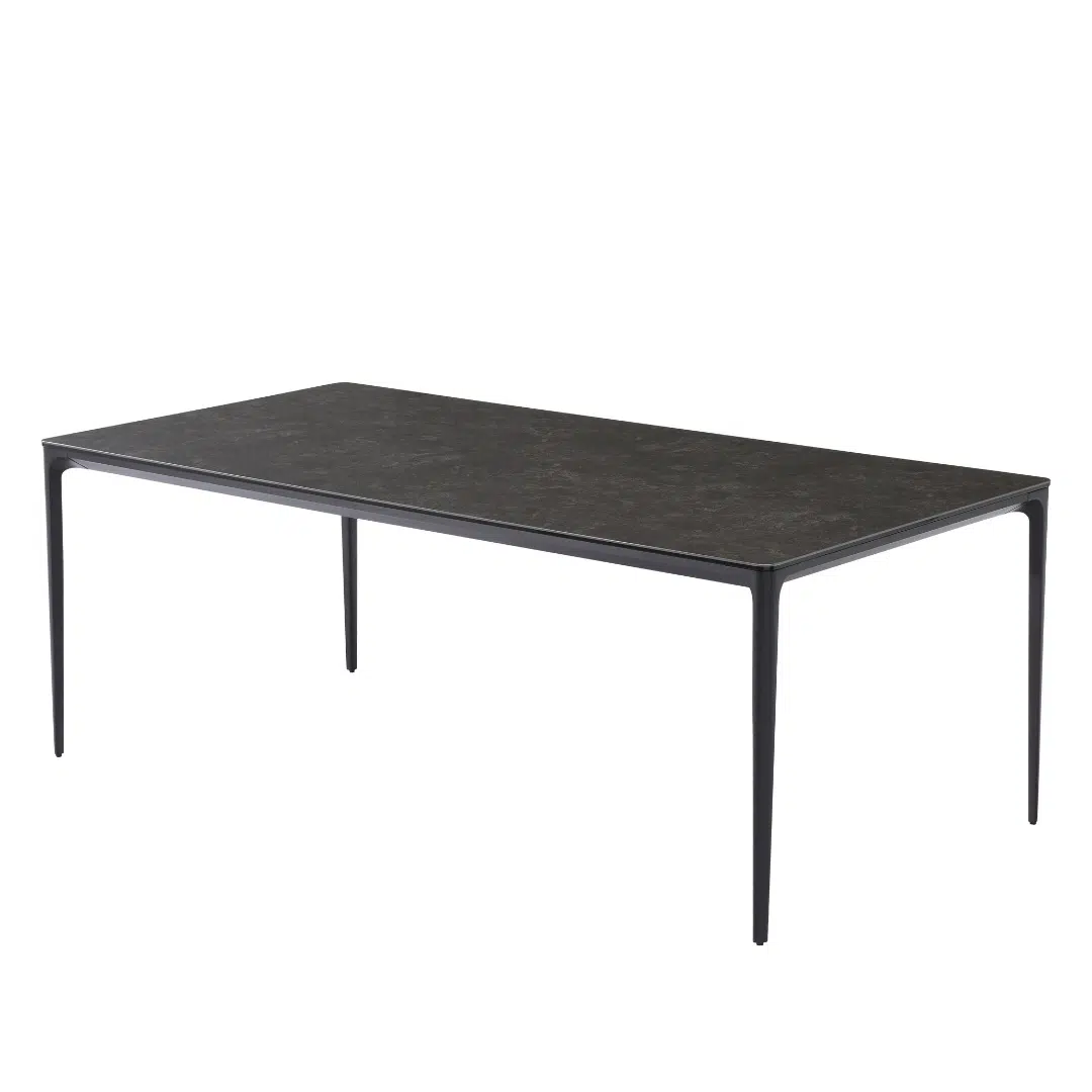 This contemporary dining table combines a scratch-resistant ceramic tabletop with a black powder-coated aluminum frame, creating a resilient structure ideal for both indoor and outdoor spaces. Its weather-resistant construction withstands daily use, making it perfect for family meals, dinner parties, or casual breakfasts on the patio. The 76kg weight ensures stability, while the minimalist frame design complements modern interiors and outdoor settings alike.