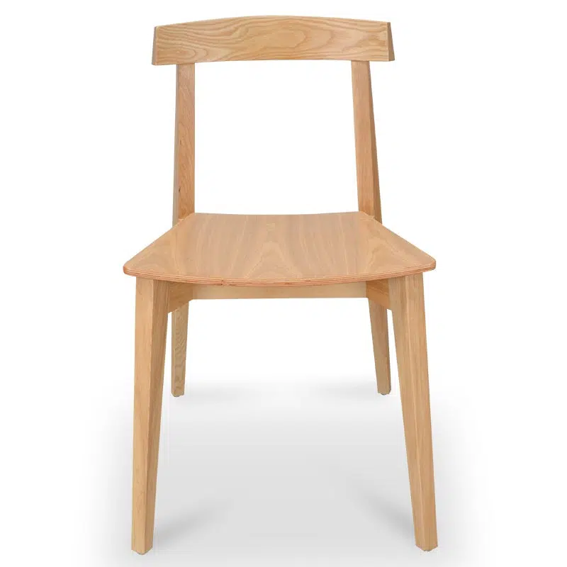 Engineered with a durable solid rubberwood frame and tapered legs, the chair features a hand-finished eucalyptus plywood seat and ash veneer backrest. The natural finish preserves the wood’s original grain patterns, ensuring each piece maintains unique character marks that celebrate the material’s authenticity. Integrated floor protectors safeguard flooring while enhancing the chair’s stability.