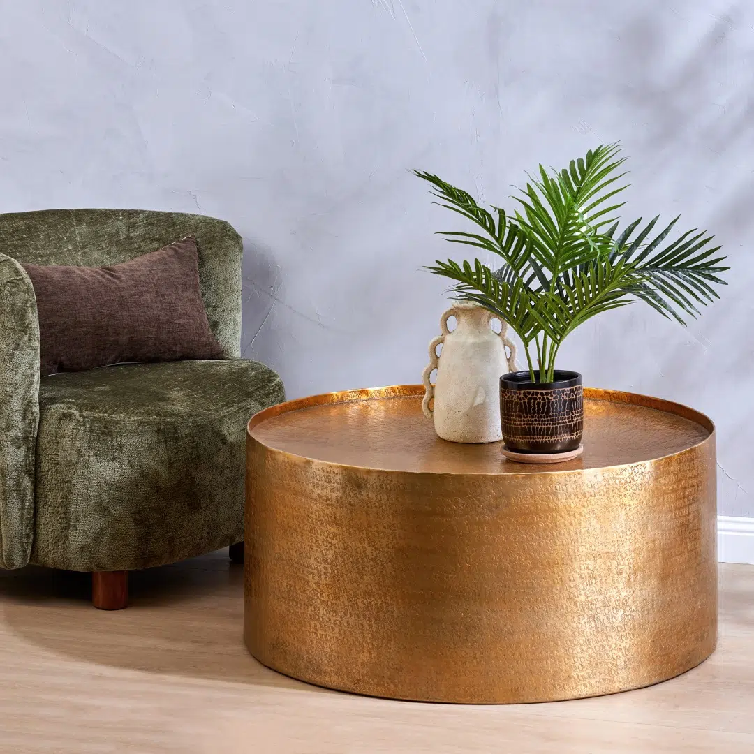 Add instant sophistication to your living space with the Mesima Coffee Table—a striking combination of sculptural form and timeless finish. Its rounded shape and antique gold tone make it a standout piece that elevates both everyday living and special occasions.