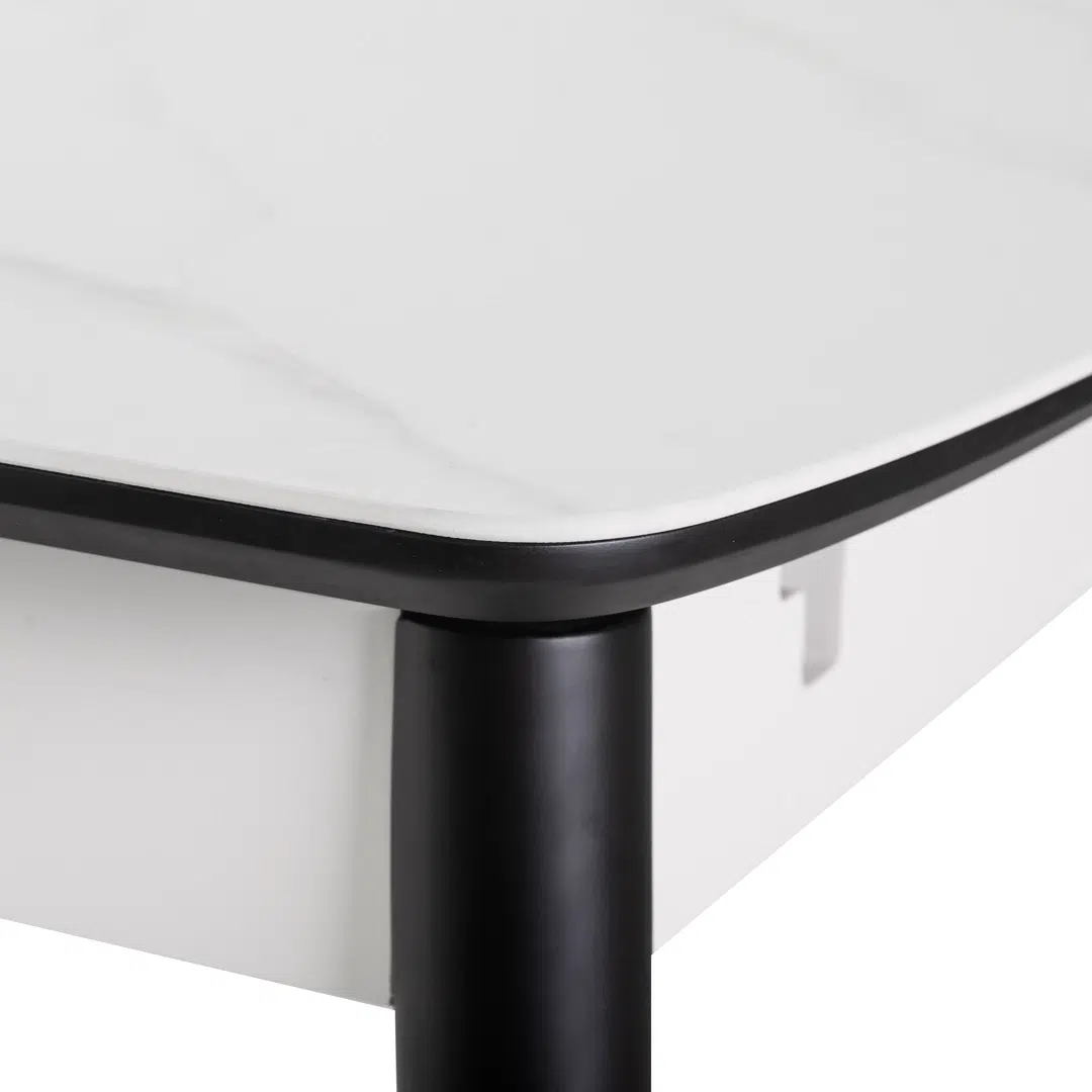 The tabletop features a matte ceramic finish with a refined marble effect on MDF, combining everyday functionality with timeless elegance. Scratch-resistant and easy to maintain, the surface retains its polished appearance even with frequent use. Available in two versatile colorways, the design provides a sophisticated focal point that pairs well with both classic and contemporary interiors.