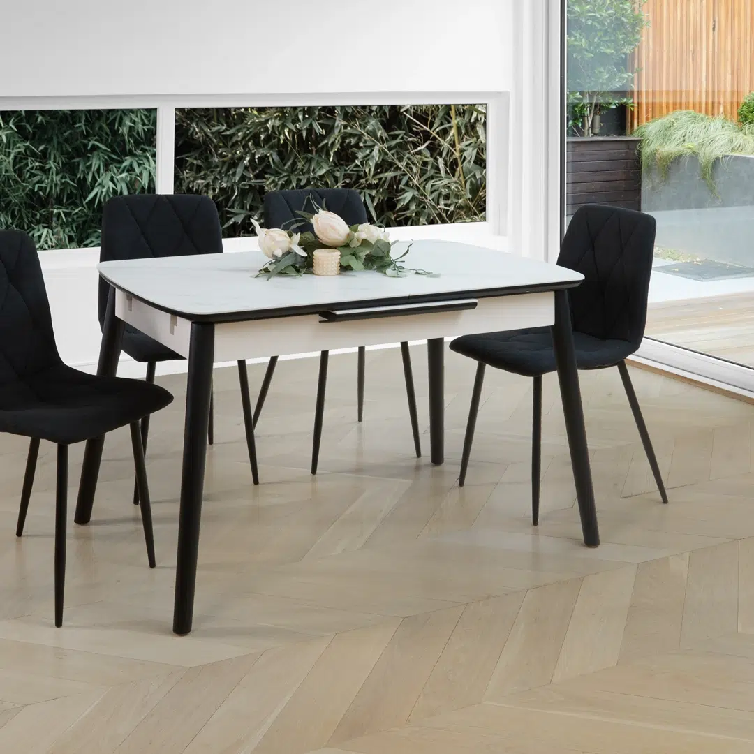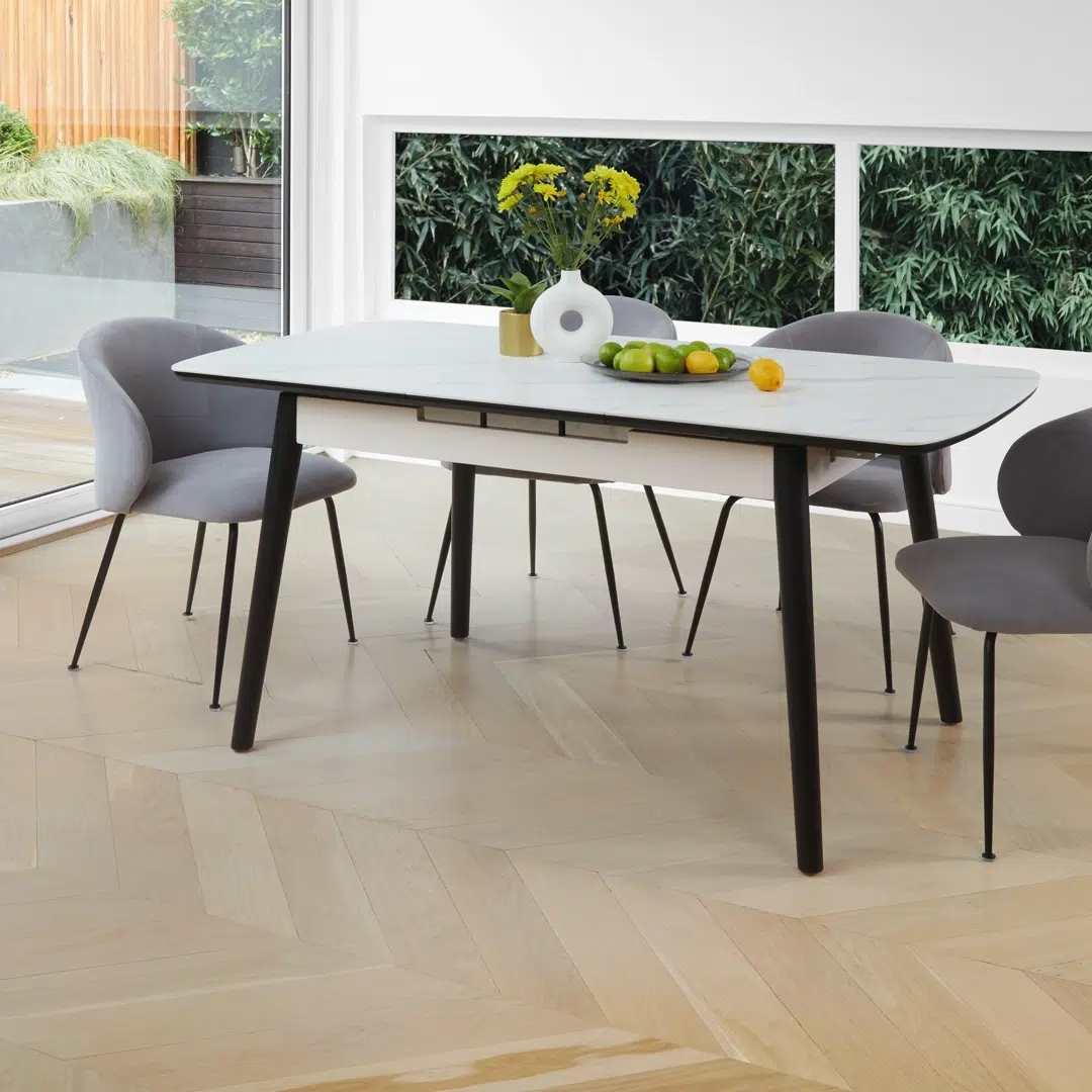This dining table is designed for versatility, offering a compact size for everyday use and an extendable surface for larger gatherings. Expanding from 120cm to 160cm in width, it adapts effortlessly to suit intimate meals or family dinners. Its sleek silhouette ensures it fits seamlessly into apartments, dining rooms, or open-plan spaces, making it one of the most practical solutions for modern living.