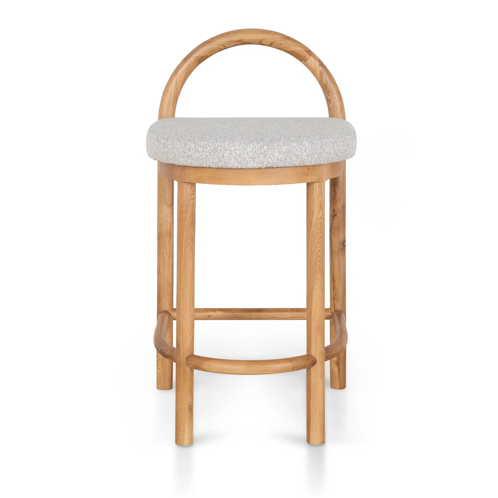 This 66cm bar stool combines sophisticated curves with a minimalist aesthetic, featuring a curved backrest and footrest to create a seamless flow of movement. The organic texture upholstery with warm undertones adds depth to modern or traditional interiors, making it a versatile statement piece for kitchen islands, home bars, or breakfast nooks.