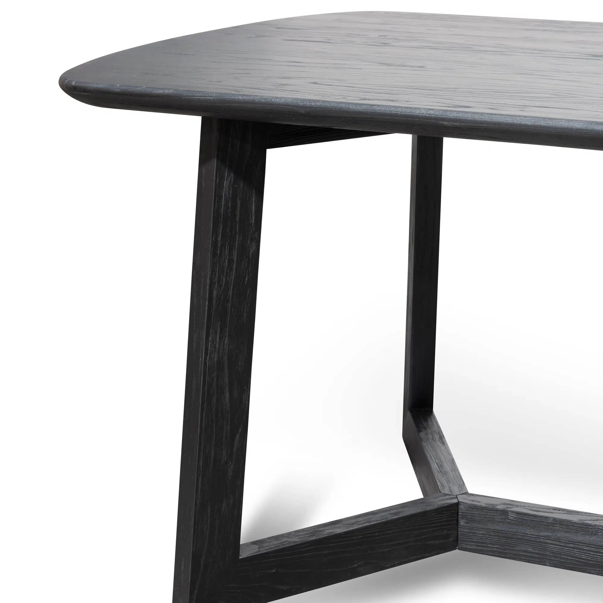 Crafted from high-quality plywood with a premium elm veneer surface, the table balances strength and elegance. The solid elm frame and legs provide structural stability, while the black finish enhances its modern appeal. This combination of materials creates a durable surface that resists scratches and maintains its aesthetic over time.