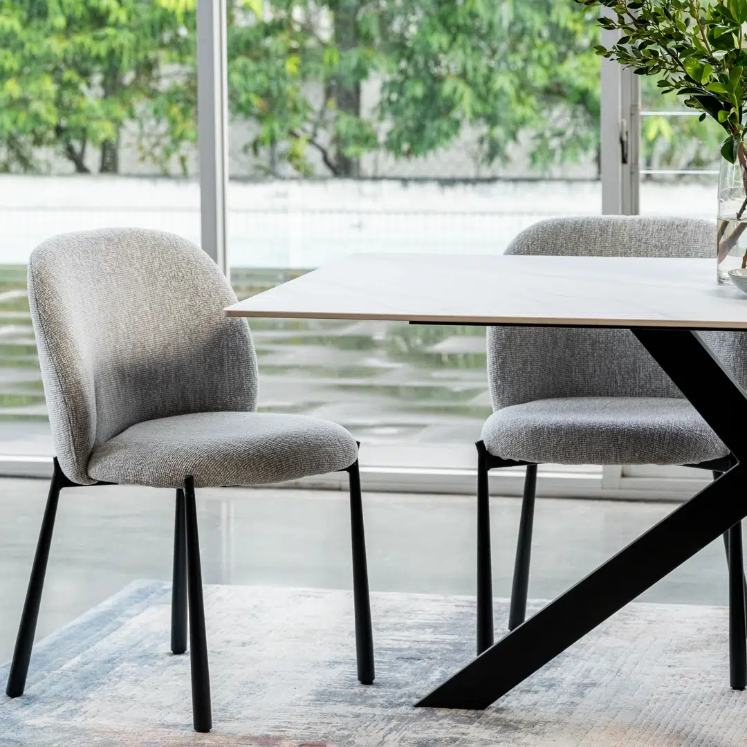 This contemporary dining chair blends refined design with everyday practicality. Its clean silhouette adds sophistication to any dining space while offering exceptional comfort and versatility.