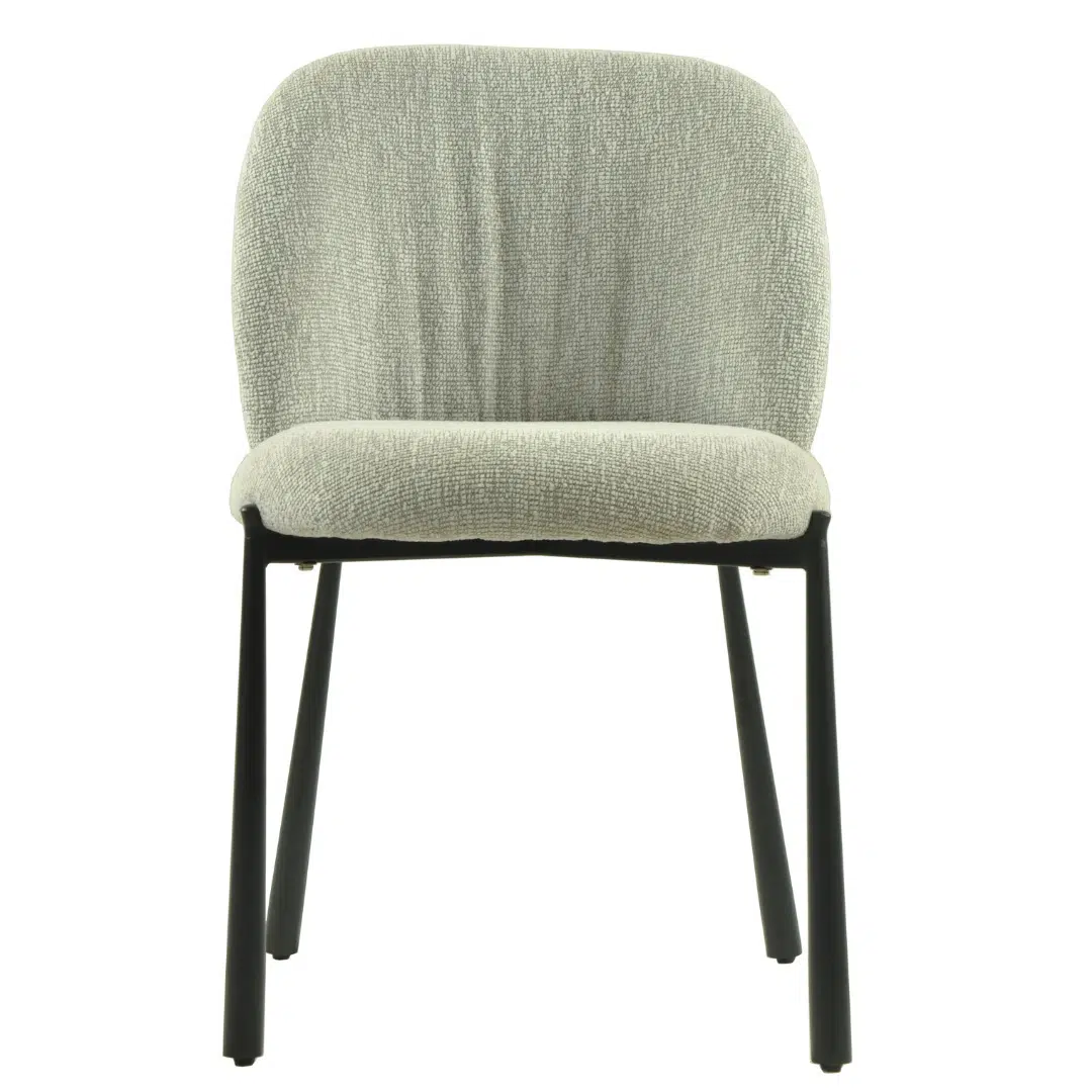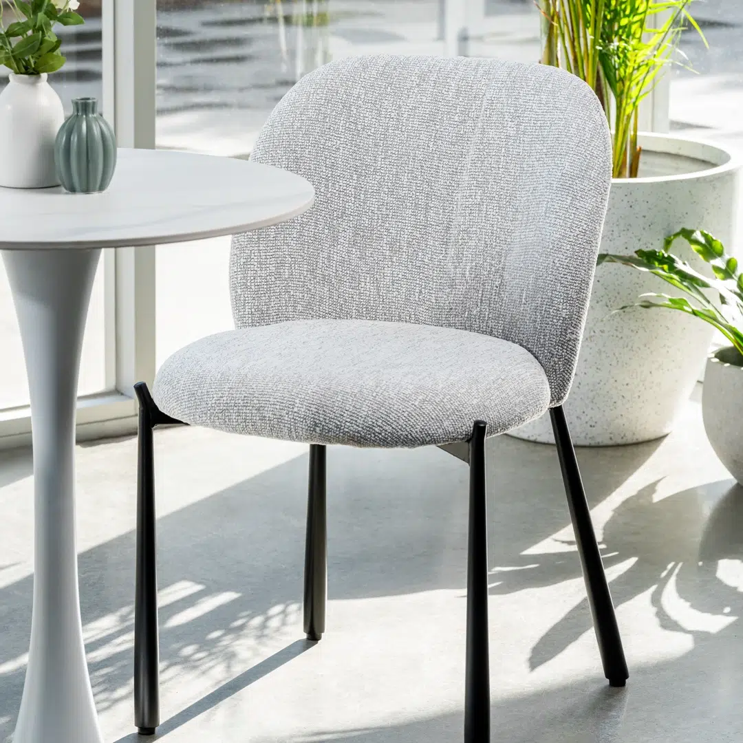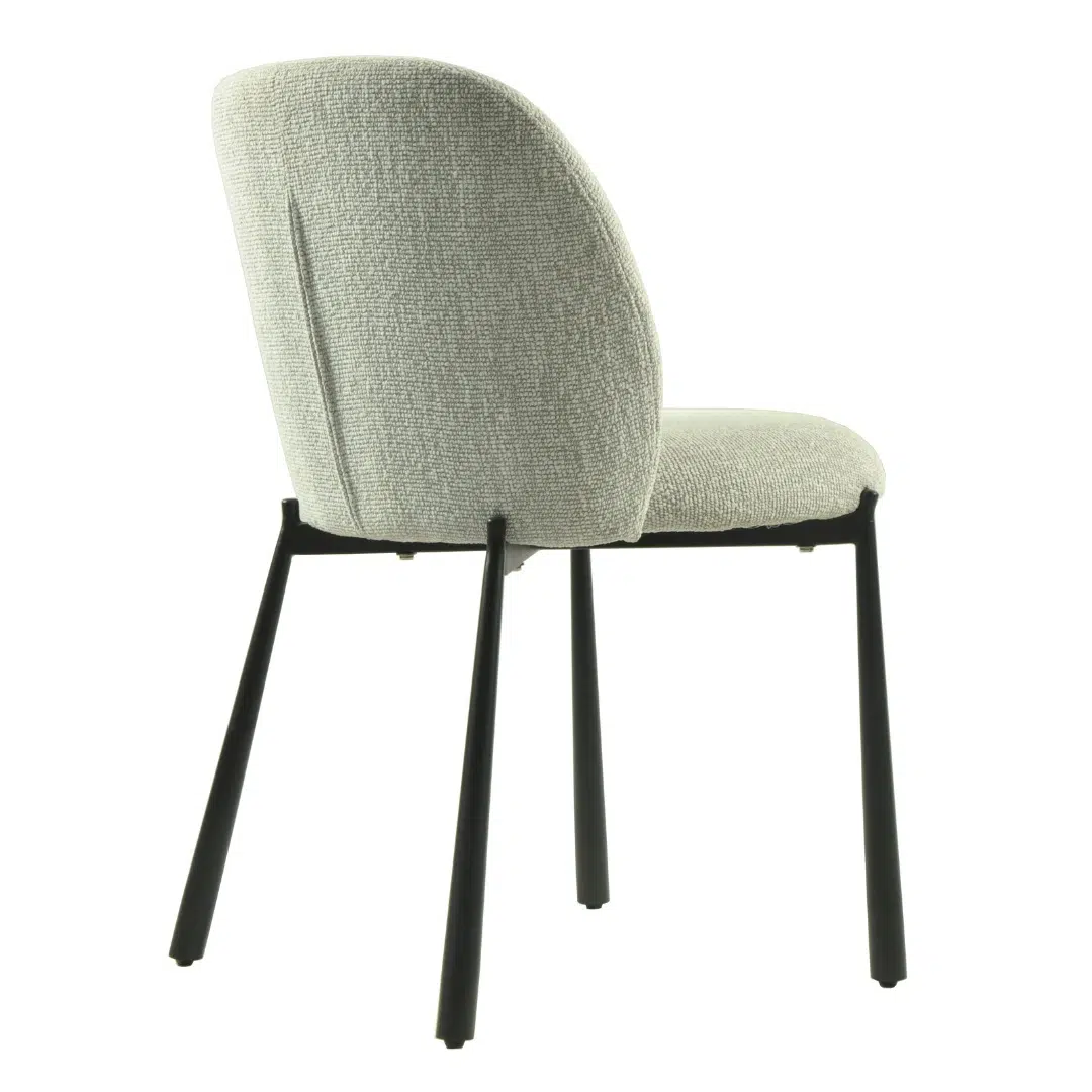 Upholstered in durable oyster-white boucle, the chair’s textured finish adds warmth and visual depth. The black powder-coated metal frame ensures strength and a sleek modern contrast.
