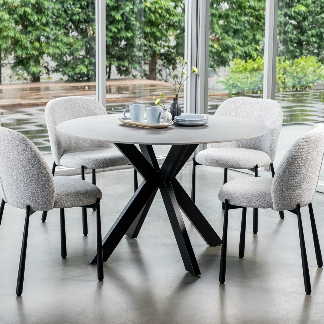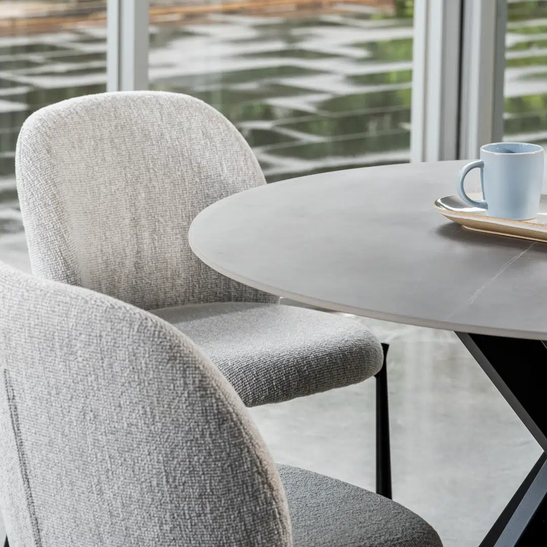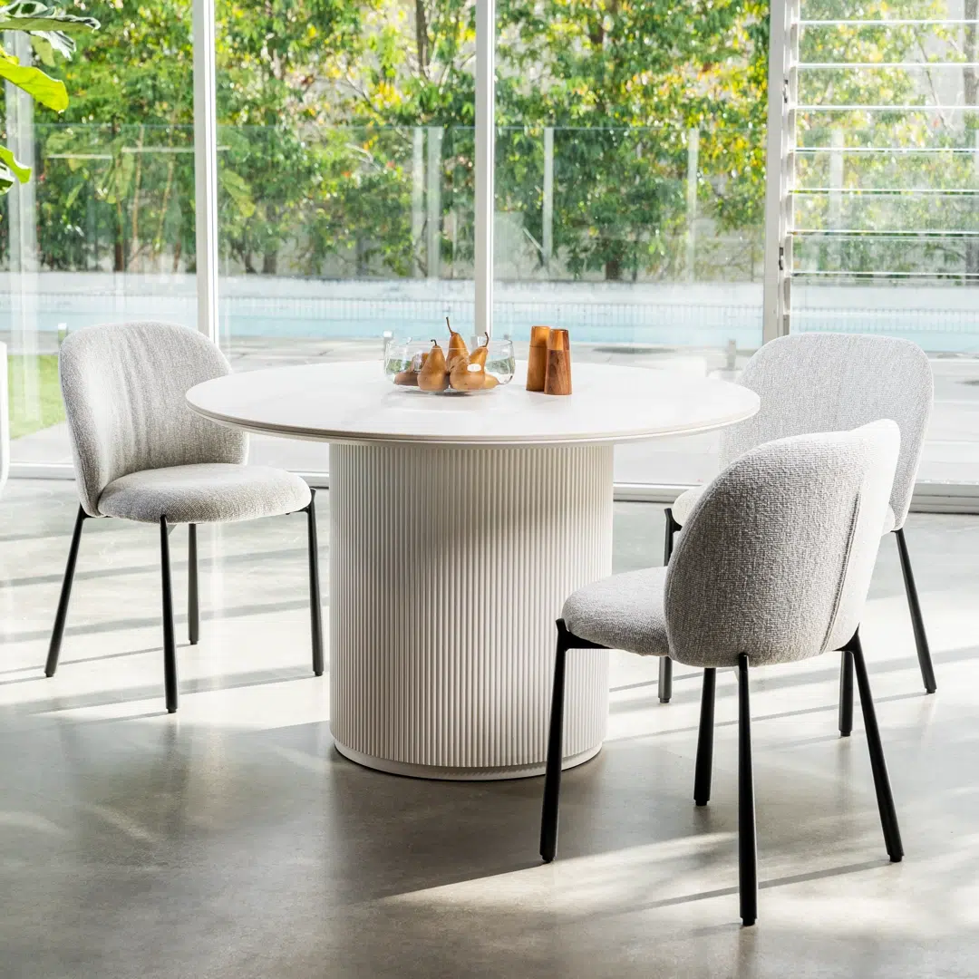 The neutral palette pairs effortlessly with wooden, glass, or marble tables, ensuring a cohesive look that complements evolving interior styles.