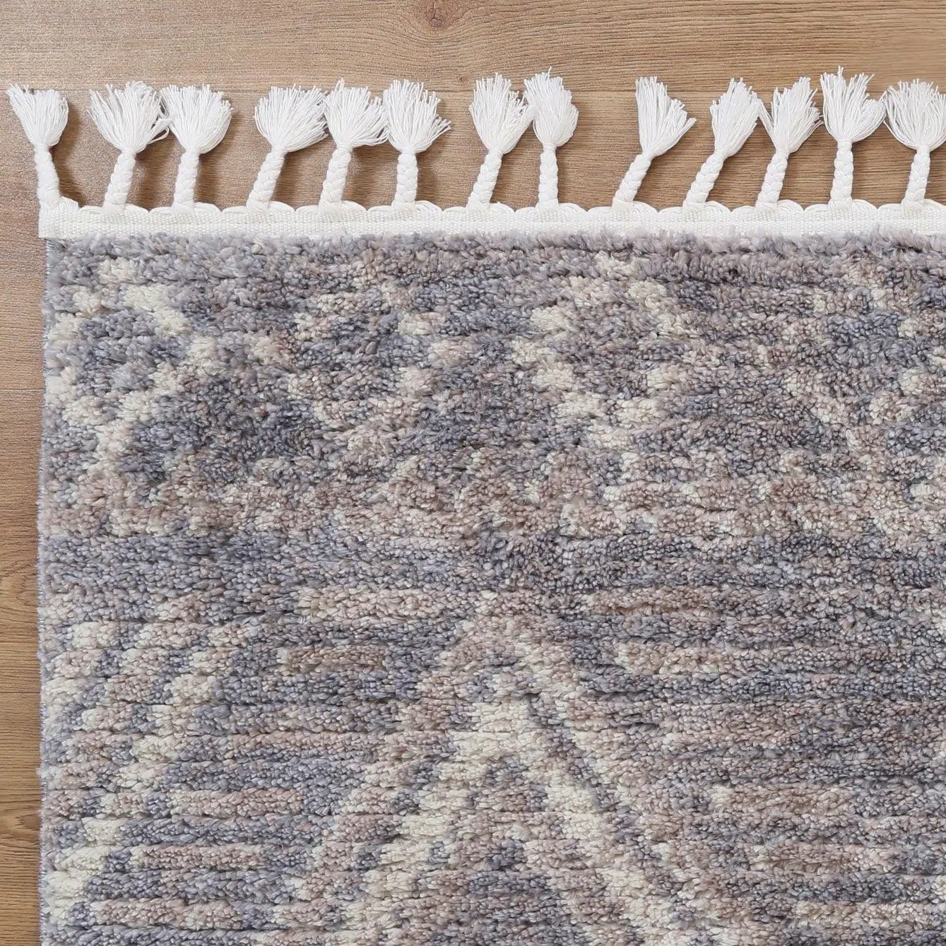 Boasting a large rectangular shape and subtle Moroccan-inspired patterns, this rug introduces visual interest and a minimalist aesthetic to any space. Its soft, shaggy fibers blend seamlessly with modern or traditional decor, while the neutral tones provide a versatile base for styling. Use it to soften a living room sofa setup or elevate the ambiance of a reading nook with its textural appeal.