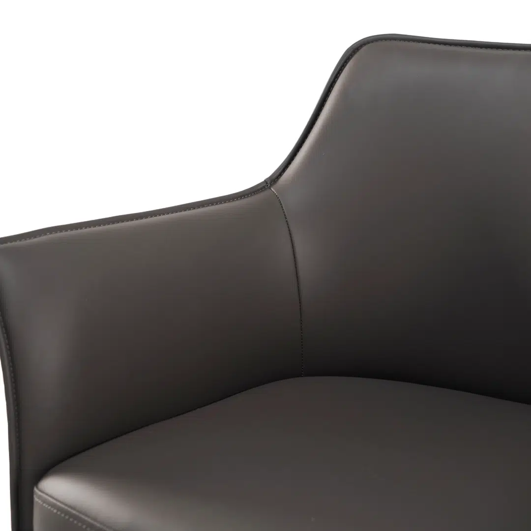 This 62cm-wide chair pairs seamlessly with any color scheme, complementing both bold modern spaces and minimalist interiors. The black powder-coated metal frame adds industrial-chic contrast to the grey eco-leather finish.