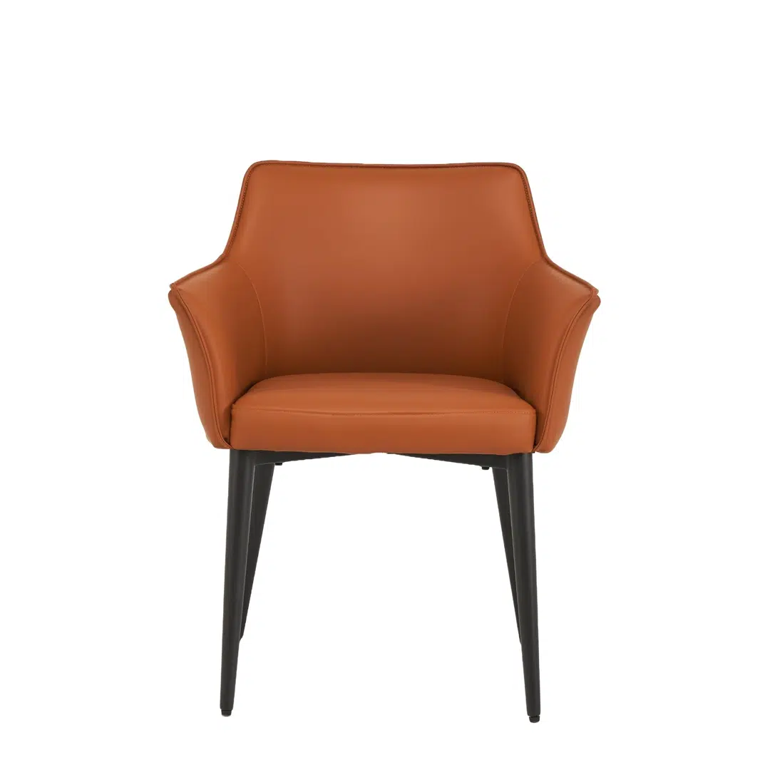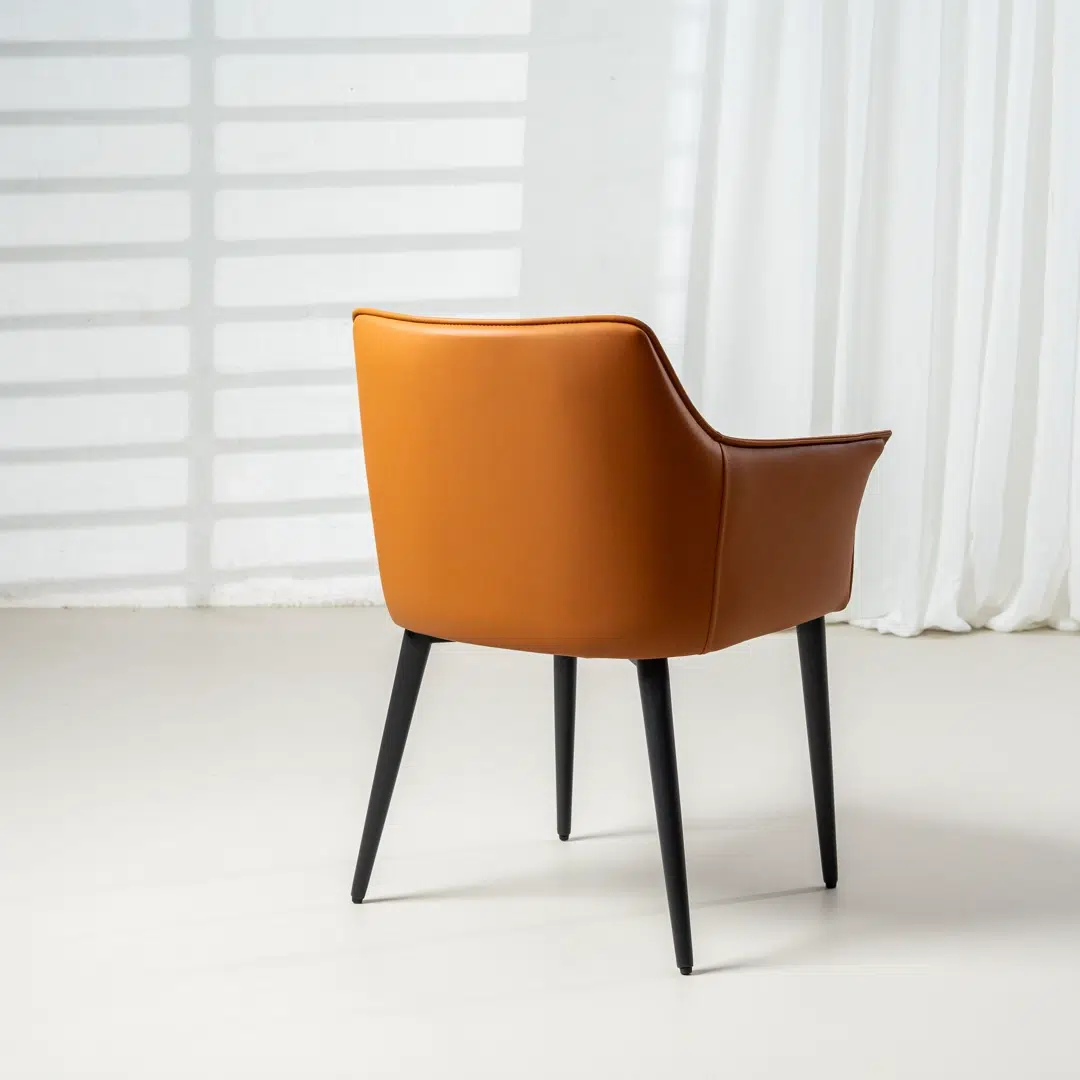 Fully upholstered in durable terracotta PU, the chair delivers a soft, comfortable seating experience while maintaining long-lasting elegance. The eco-friendly material is easy to clean and resists daily wear, keeping the chair looking pristine for years.