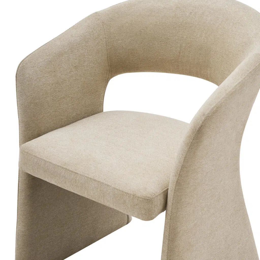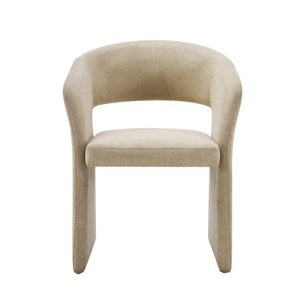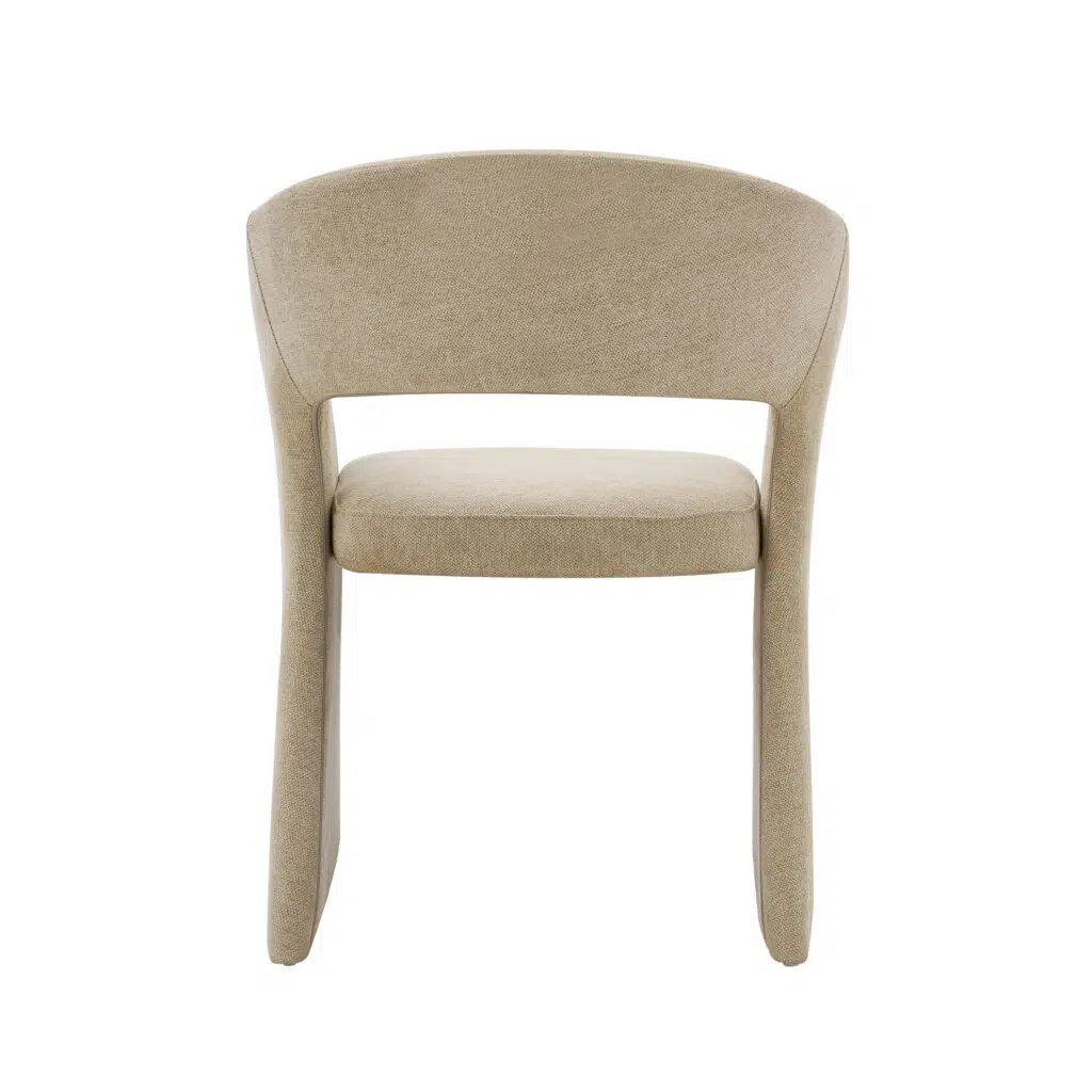 The Nola Dining Chair features a clean, modern silhouette in a soft sand tone, bringing warmth and understated elegance to dining spaces.
