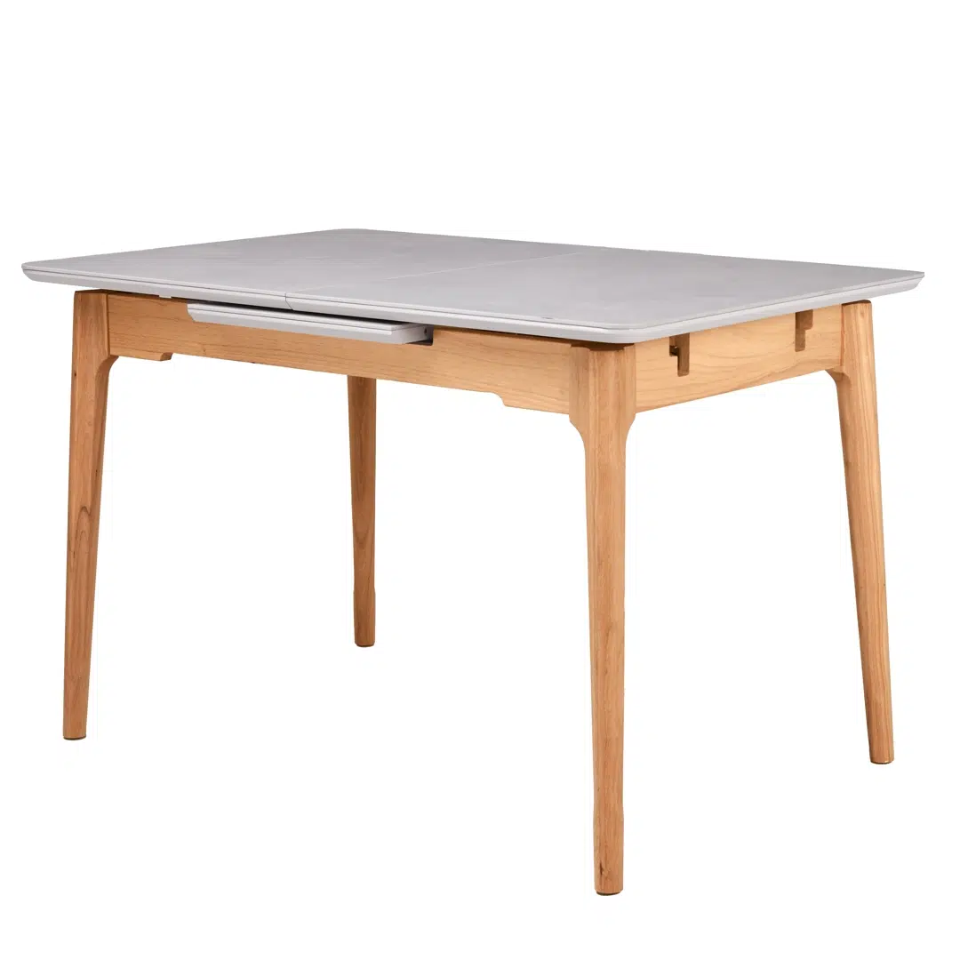 Reinforced by solid rubber wood legs in a natural finish, the table offers robust support even when fully extended. Its 52kg weight ensures durability, while the 76cm height creates a comfortable dining posture. The combination of ceramic resilience and hardwood strength guarantees wobble-free performance, making it ideal for both everyday use and special occasions.