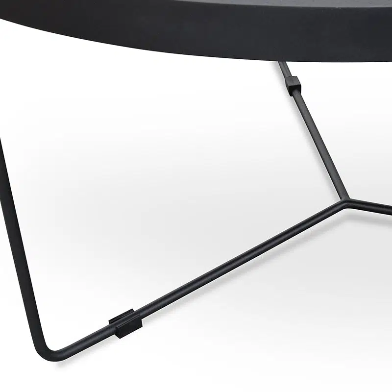 This 90cm round coffee table features a striking black oak top with a matte finish, creating a sophisticated contrast against its sleek black metal frame. The minimalist design adds modern elegance to any living space, while the dark tones seamlessly integrate into diverse interior styles, balancing angular furniture with its organic shape.