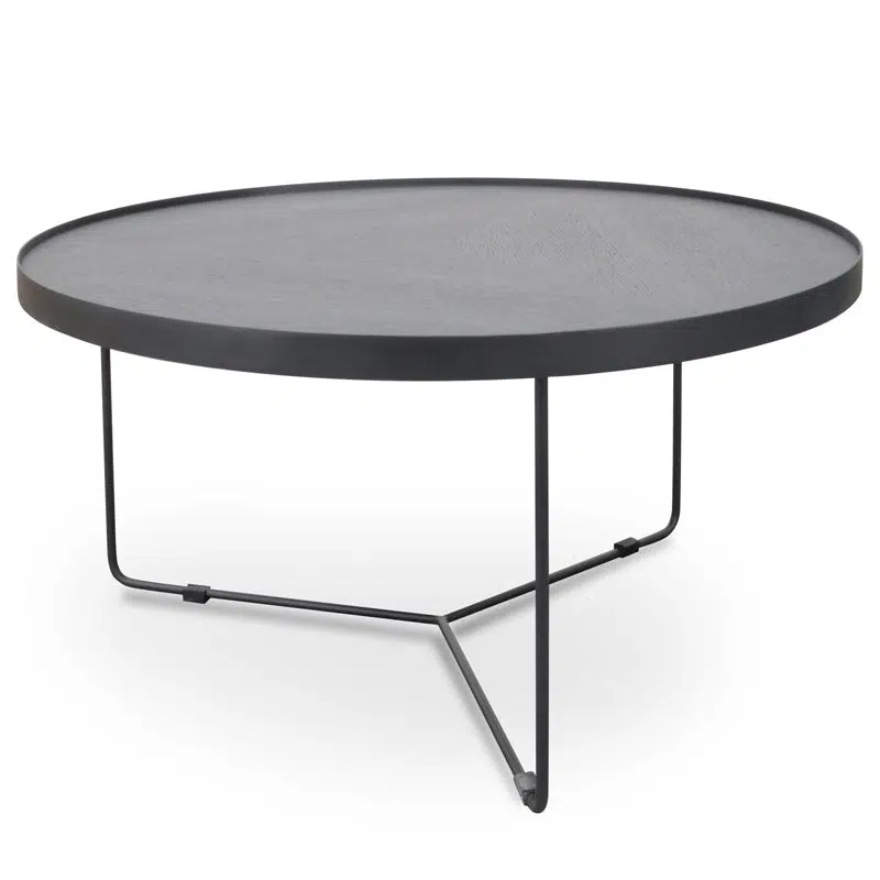 Nova 90cm Round Coffee Table – Black Oak Top – Black Frame