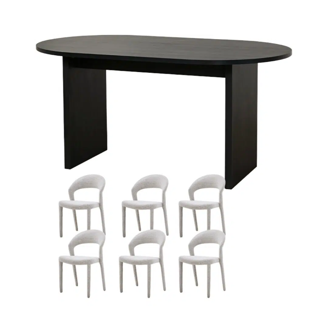 Nova Oval Dining Table with 6 Alin Dining Chairs