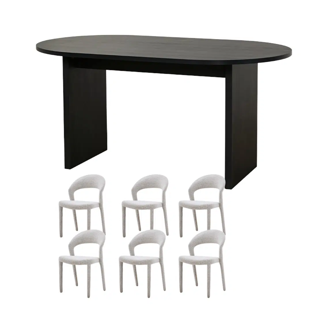 Nova Oval Dining Table with 6 Alin Dining Chairs