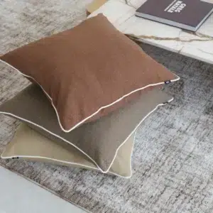 A crisp white trim frames the cushion, creating a refined contrast that enhances its simple, classic design, perfect for sofas, armchairs, or beds.