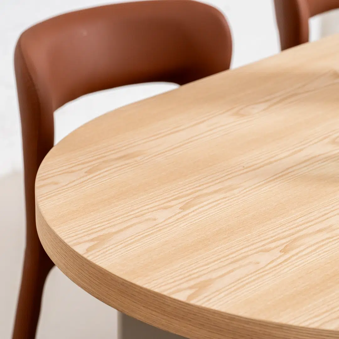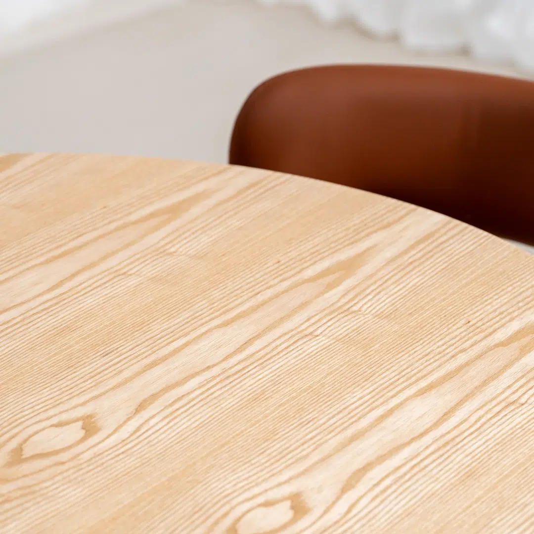 Built to withstand daily wear and occasional spills, the ash veneer MDF tabletop resists warping and maintains its lustrous finish over time. The sturdy MDF frame with reinforced grey-painted legs ensures stability, supporting up to six guests comfortably. Whether used for weekday meals or weekend gatherings, this table offers long-lasting performance without sacrificing style.