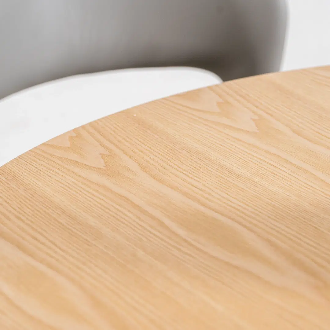 The table combines engineered MDF for structural stability with a premium ash veneer top that resists warping in varying climates. The solid-paint frame features a chip-resistant matte grey coating, preserving its fresh appearance over time. Regular cleaning requires only a dry cloth, avoiding the need for harsh chemicals that could damage the surface.