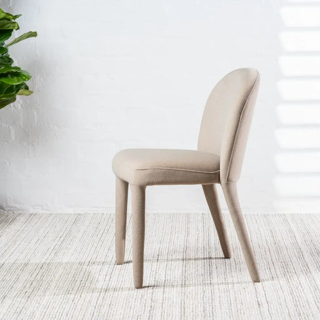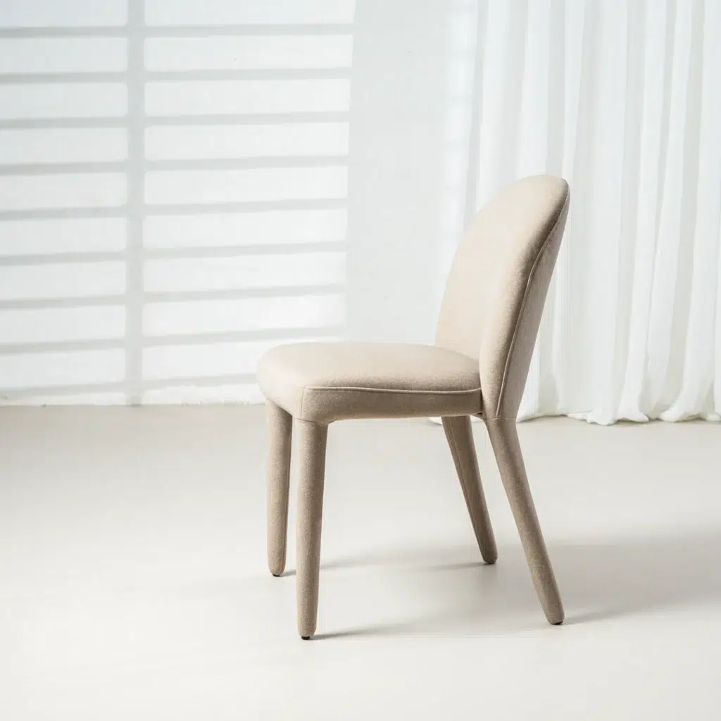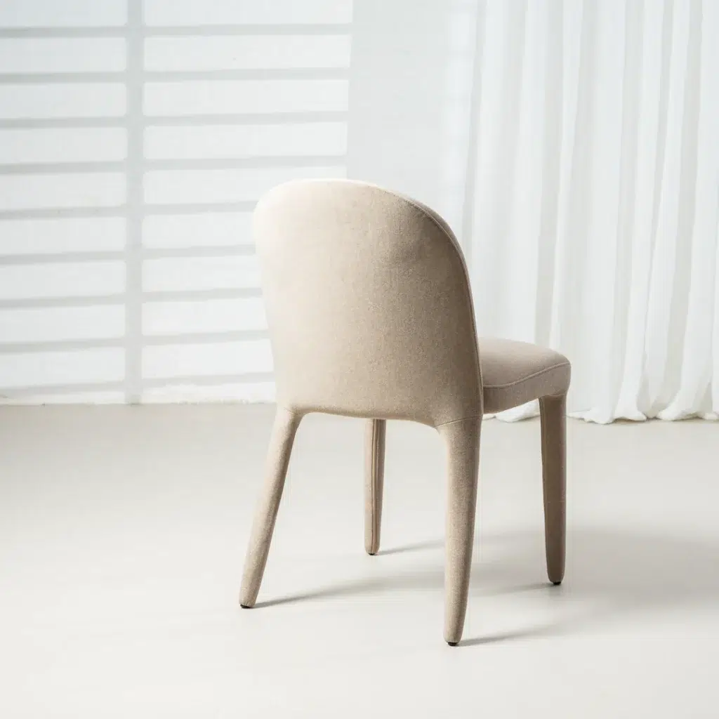 Wrapped in premium linen-mohair fabric, the chair combines tactile richness with long-lasting performance. The woven texture resists pilling and maintains its crisp appearance through daily use, while the neutral tone offers versatile pairing options with existing decor schemes.