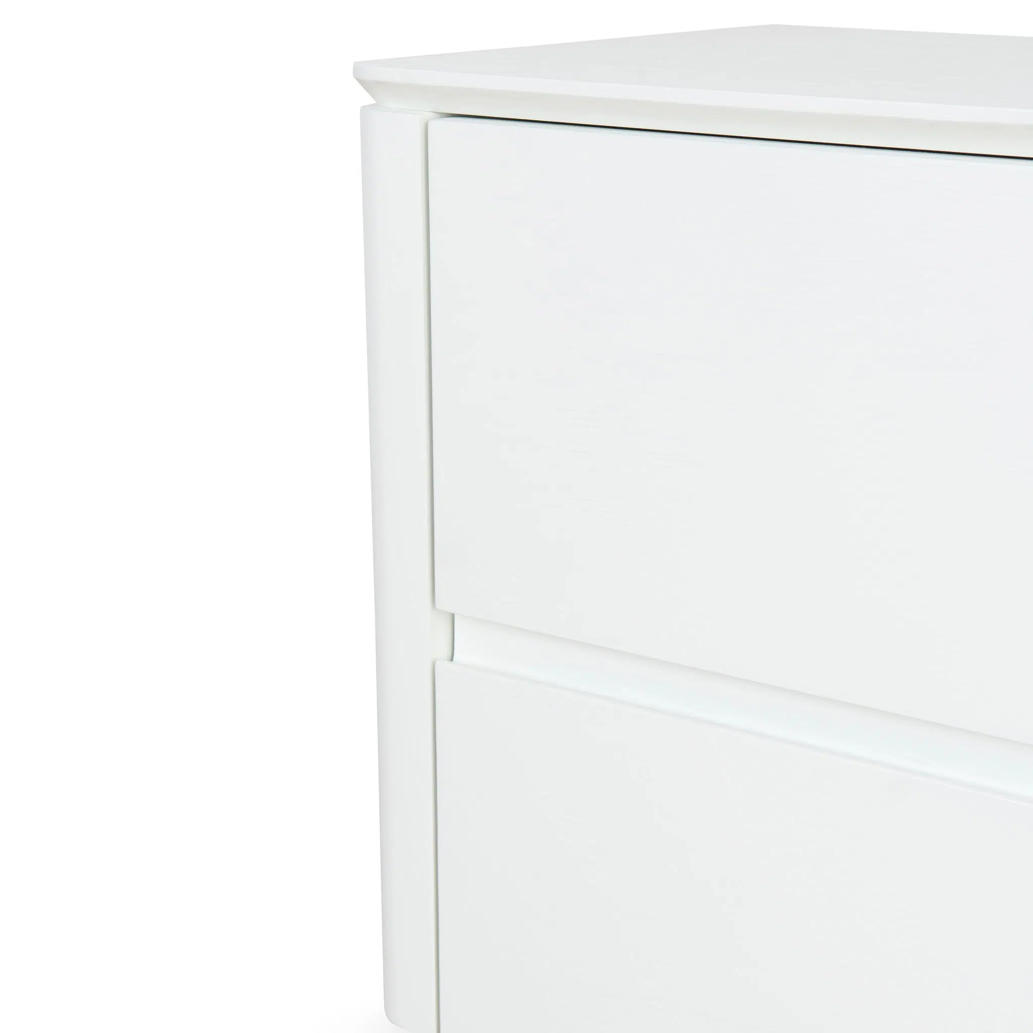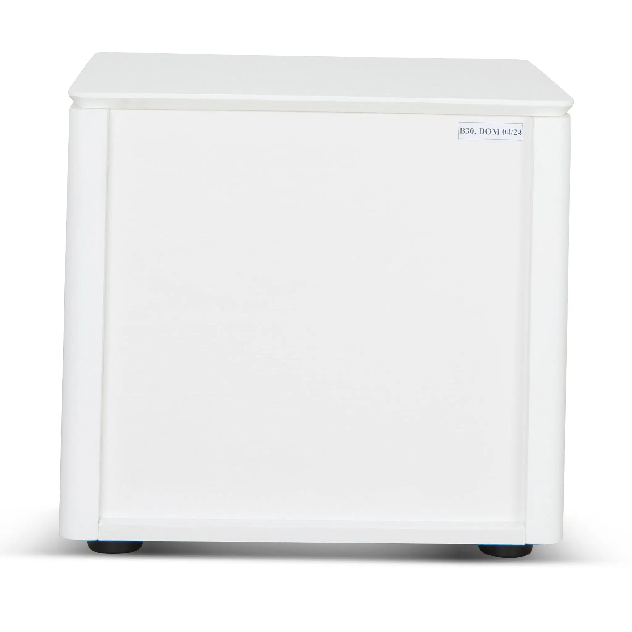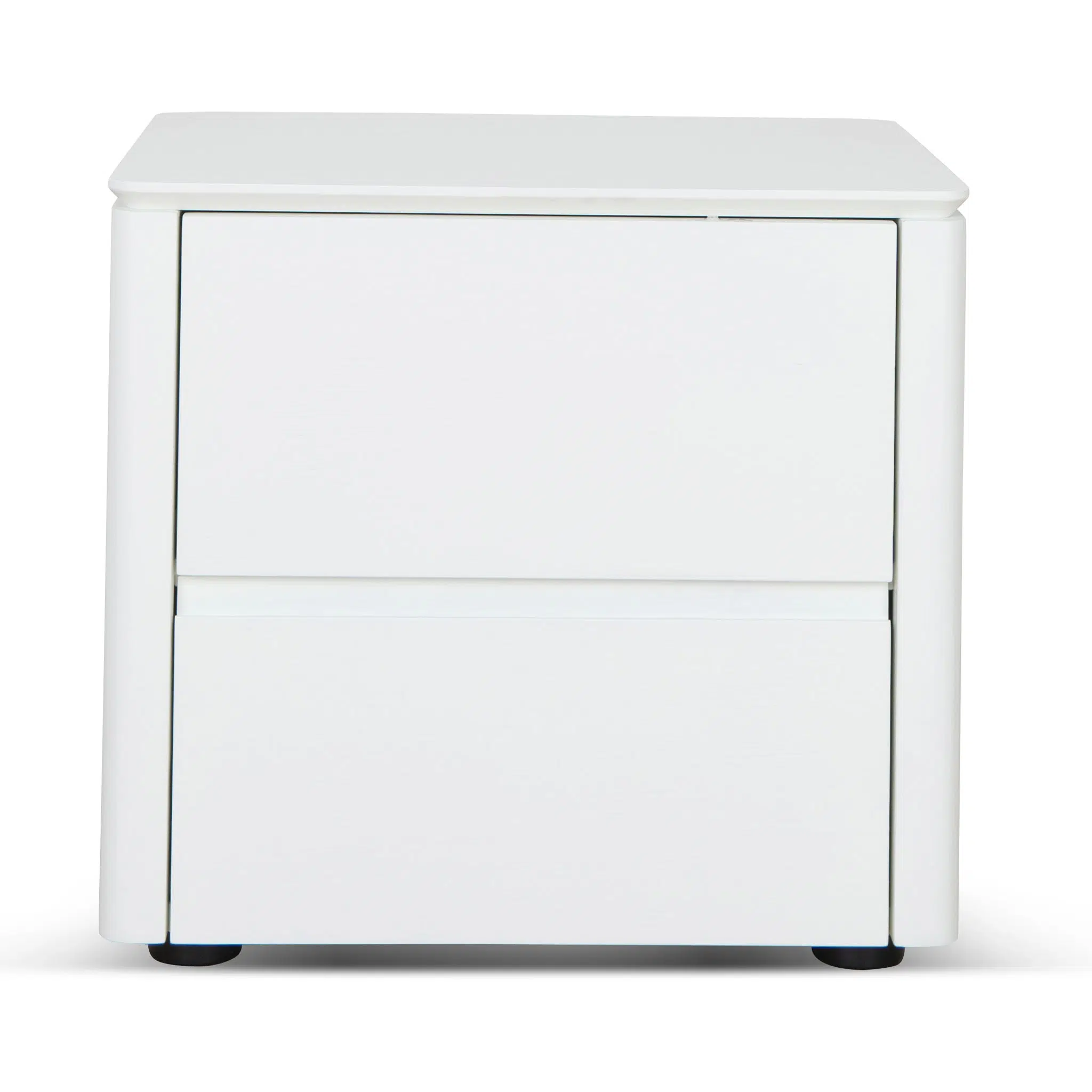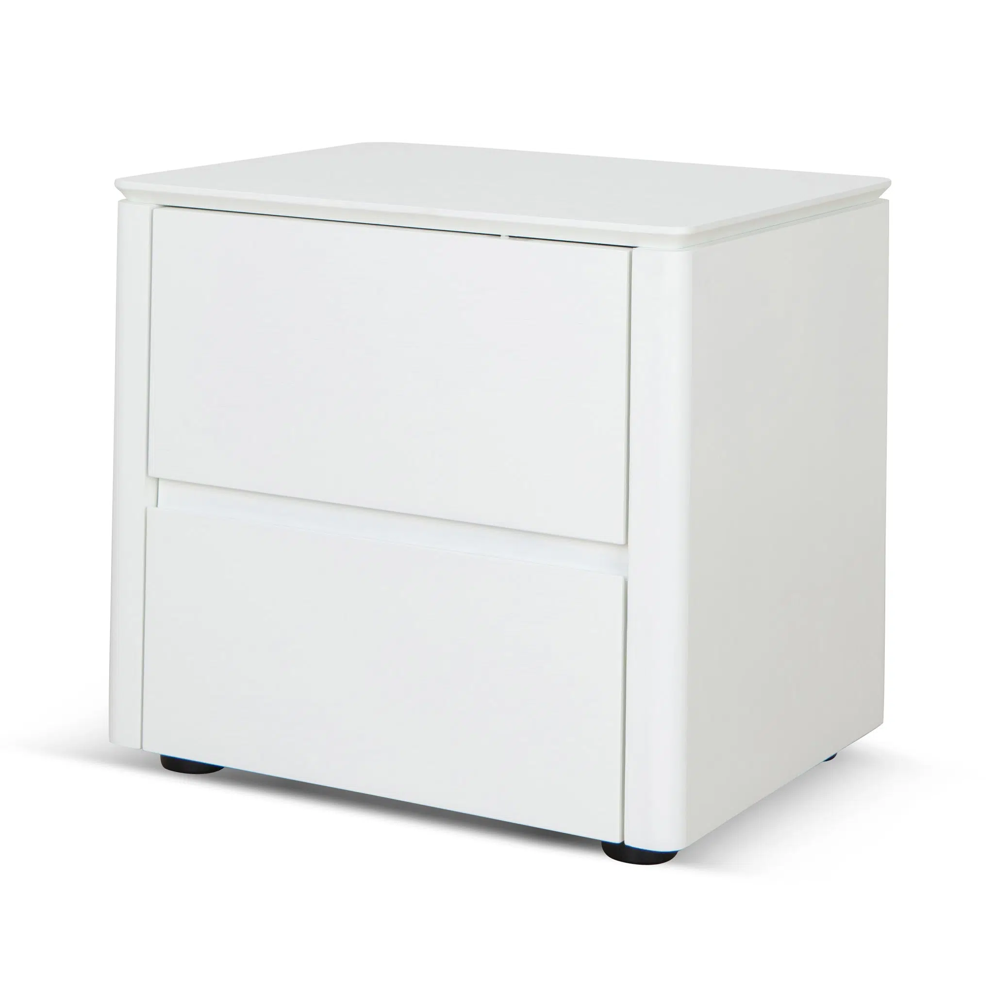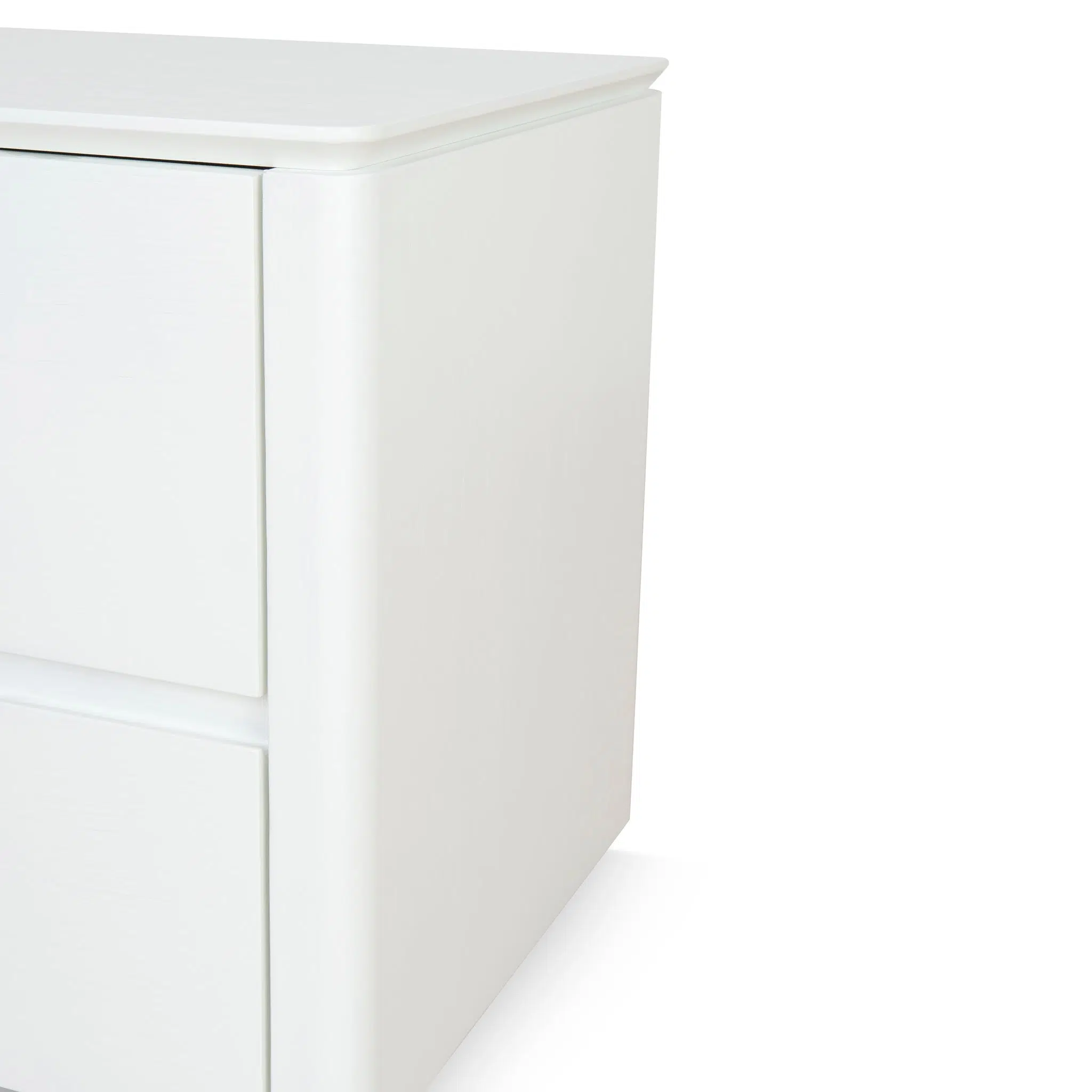 This bedside table features a luxurious white oak veneer finish that exudes timeless elegance, seamlessly enhancing any bedroom aesthetic with its refined appearance. Its smooth, rounded corners and minimalist profile create a harmonious blend of modern sophistication and classic charm.