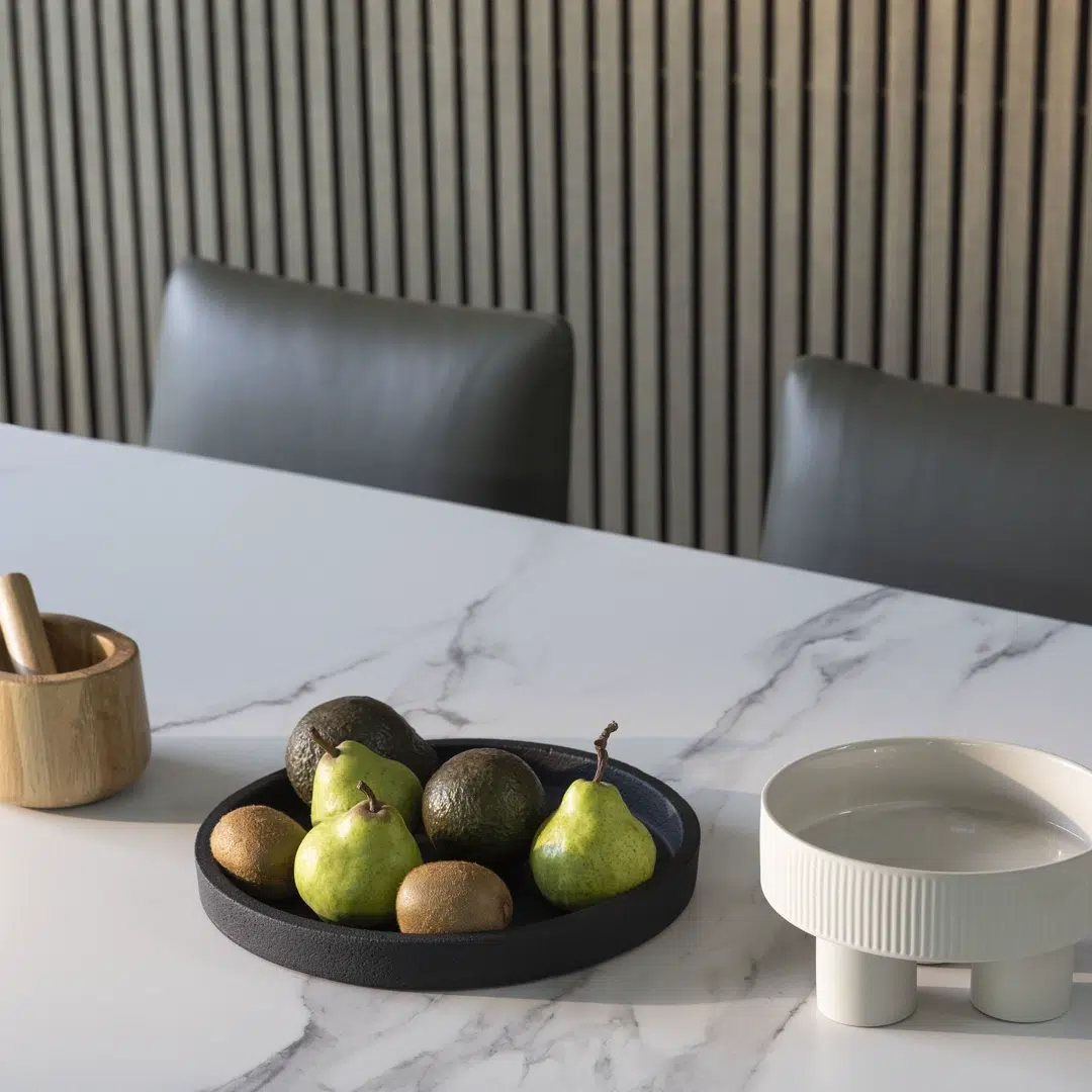 - Table top: Valentino Ceramic (matte ceramic with a marble effect on tempered glass)