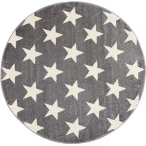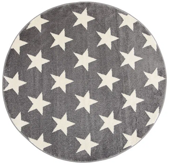 Piccolo Light Grey and White Stars Kids Round Rug