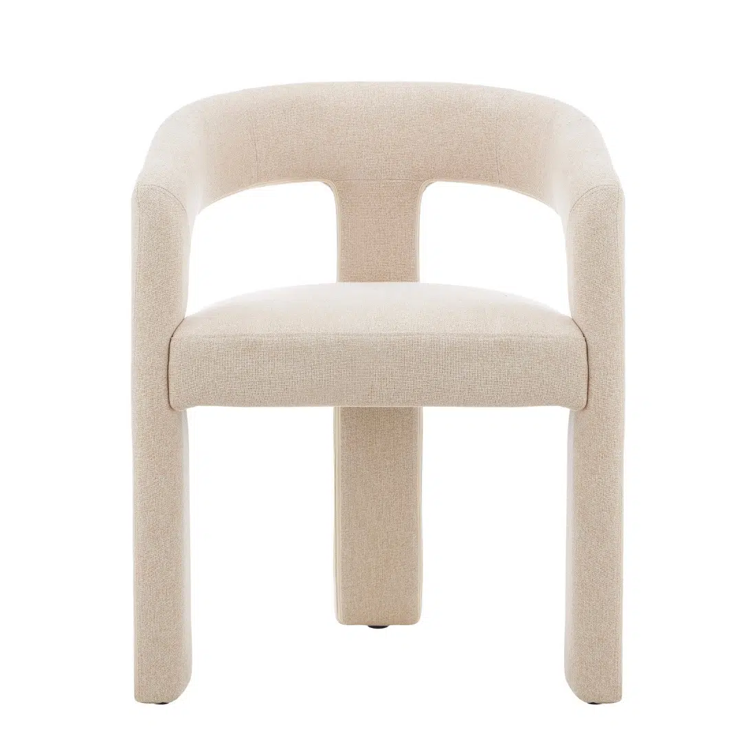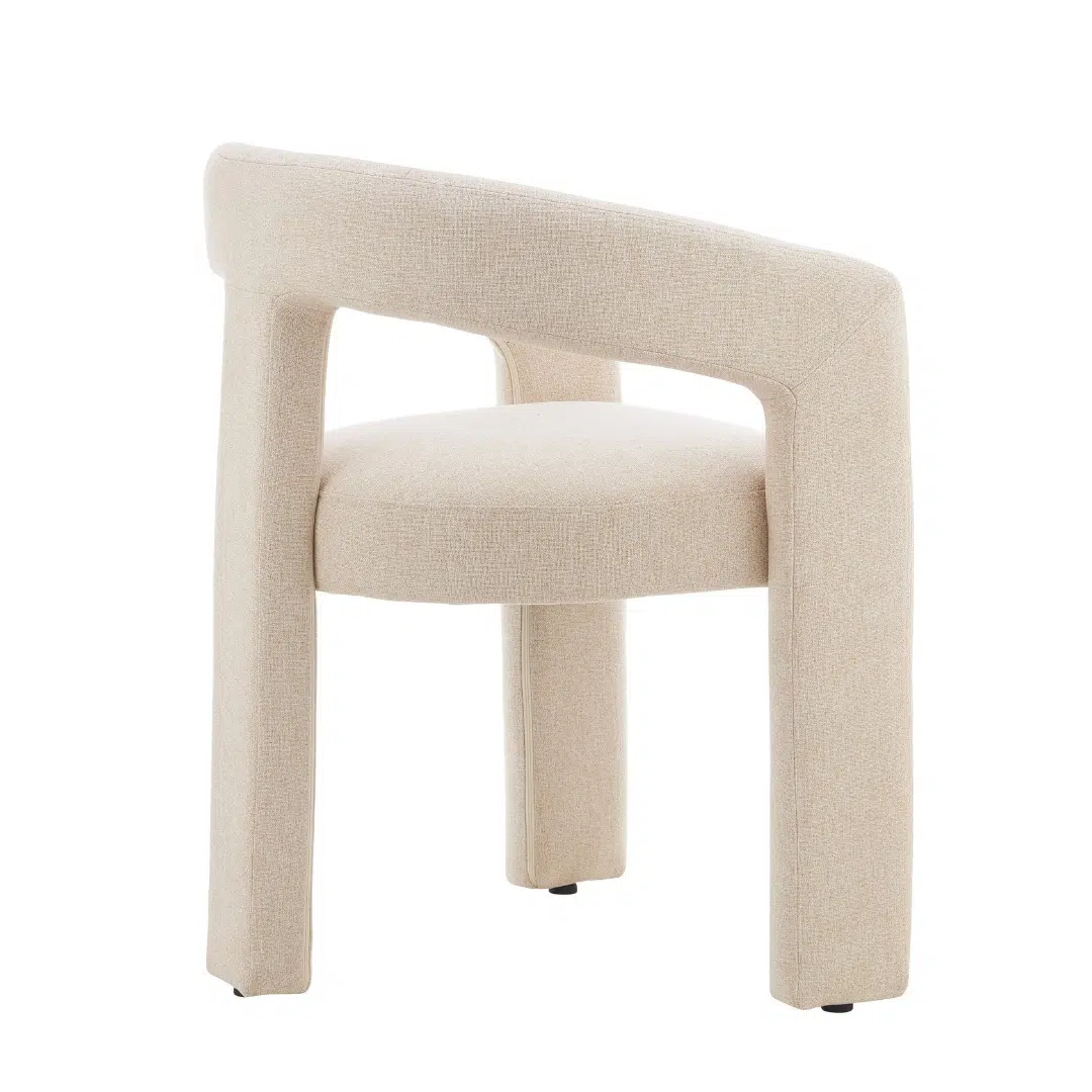 Generously cushioned and ergonomically shaped, the chair provides excellent support while maintaining a plush, cozy feel. Its fabric’s natural texture enhances relaxation during long gatherings.