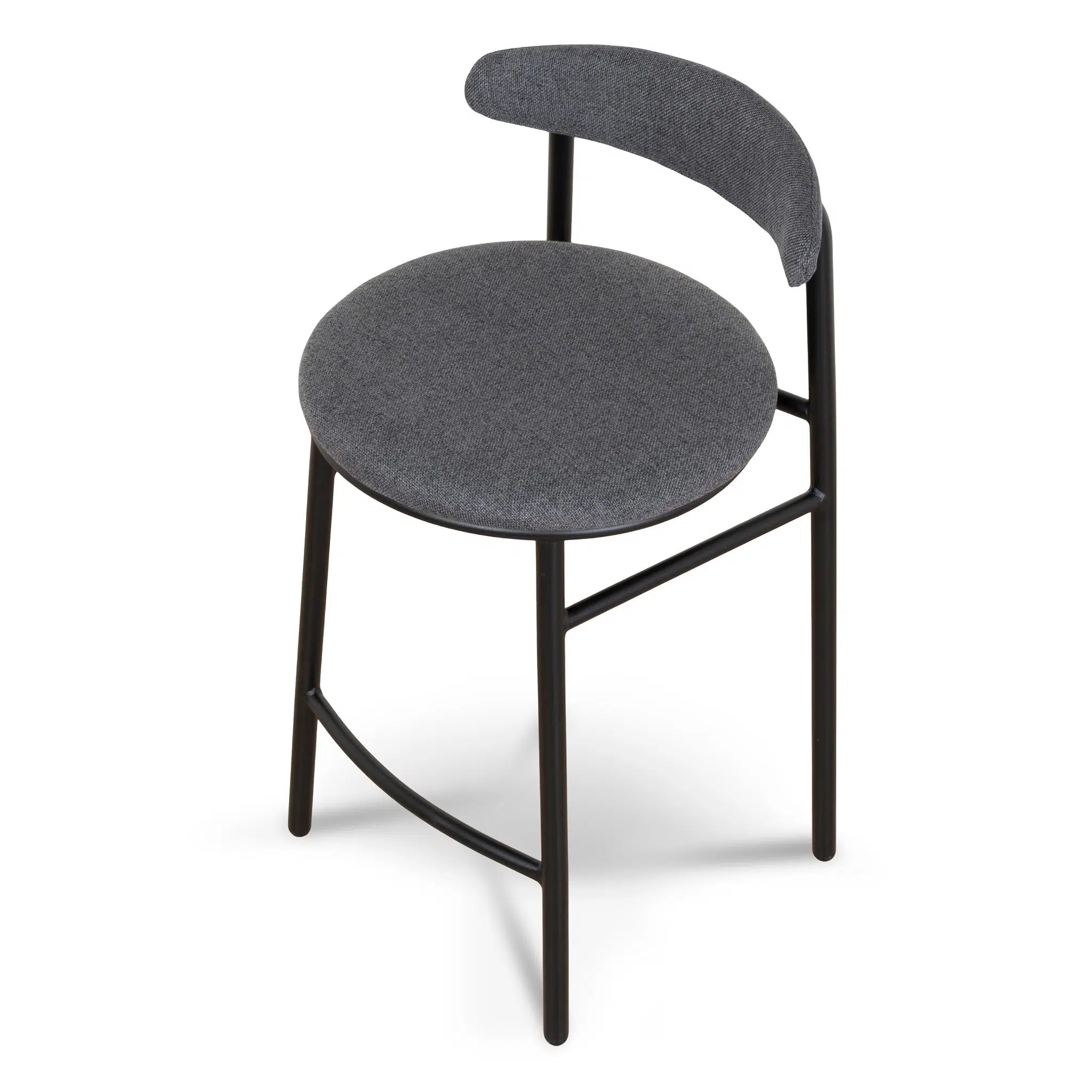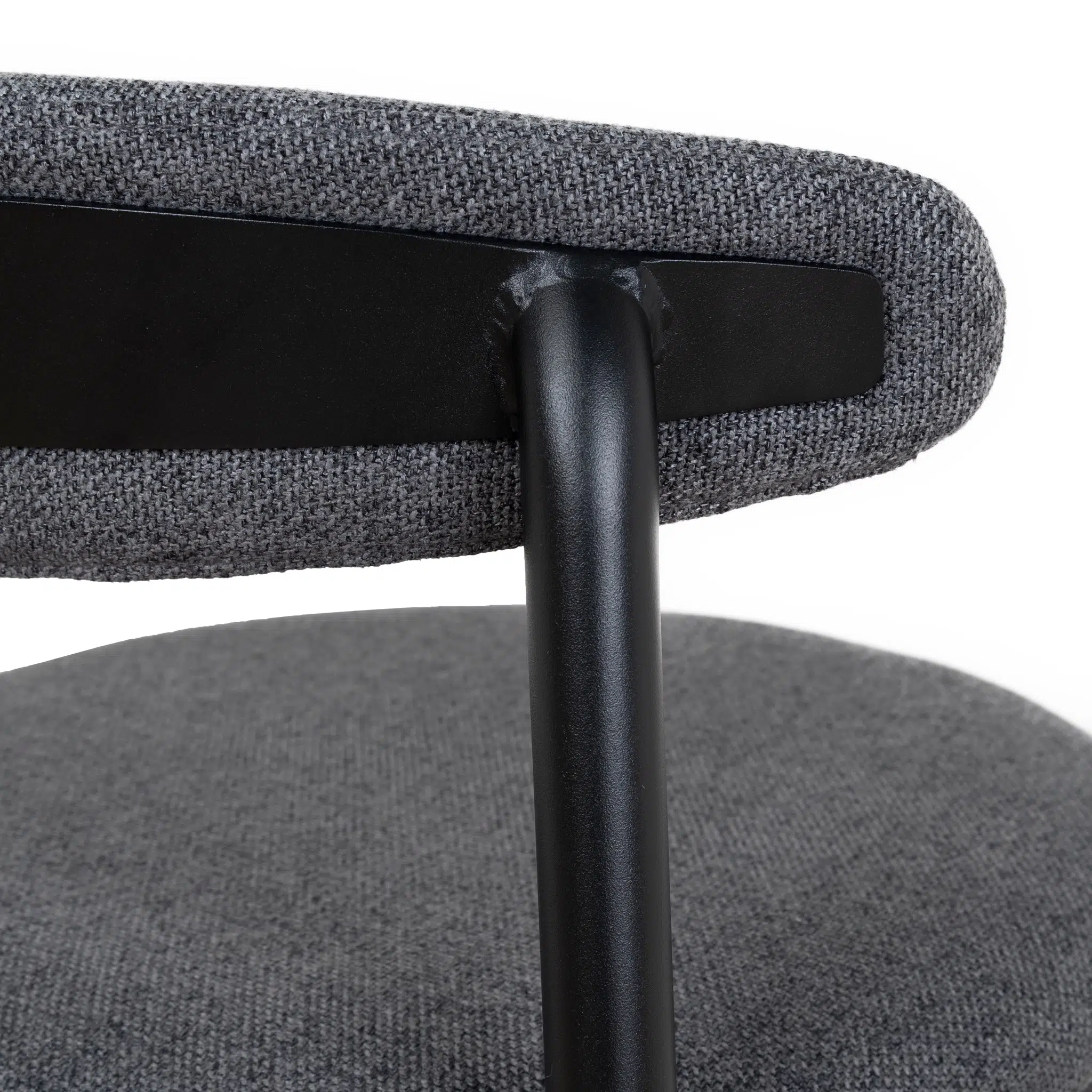 Designed with versatility in mind, the subtle texture of the polyester upholstery resists stains while maintaining a luxurious feel. The frame’s matte black finish contrasts elegantly with the neutral seat color, creating a statement piece that adapts seamlessly to open-plan living spaces, commercial bars, or contemporary office break rooms.