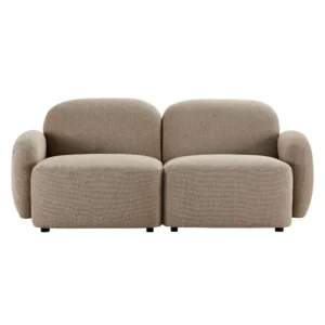 This versatile seating collection merges sculptural form with modular functionality, offering a low-profile silhouette defined by softly contoured curves and plush chenille upholstery in a neutral taupe tone. Designed for modern living, each piece delivers generous comfort while maintaining a clean, understated aesthetic that complements both contemporary and transitional interiors.