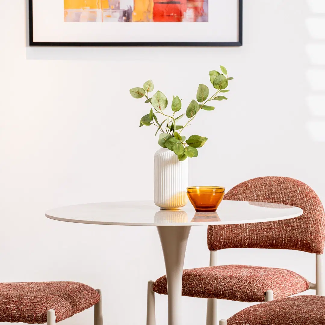 This iconic dining table seamlessly blends classic Scandinavian aesthetics with contemporary updates, making it a versatile centerpiece for modern dining spaces. Its durable matte ceramic tabletop resists scratches and heat, ensuring longevity in busy households while maintaining a pristine appearance. The sleek painted metal base adds industrial-chic appeal, creating a harmonious balance between style and practicality.