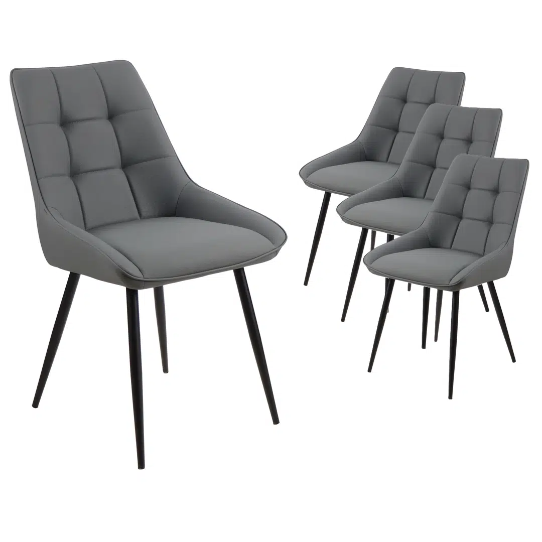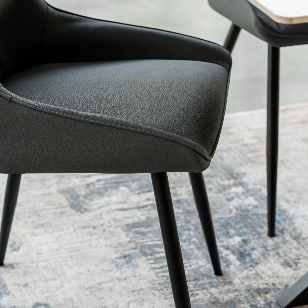| Features: | 4 x dining chairs in the box, Charcoal eco leather with black powder-coated metal, Value Dining Chair, Upholstered in a Range of Faux Leather Colours, Padded seat and back for extra comfort, Black powder-coated Frame |