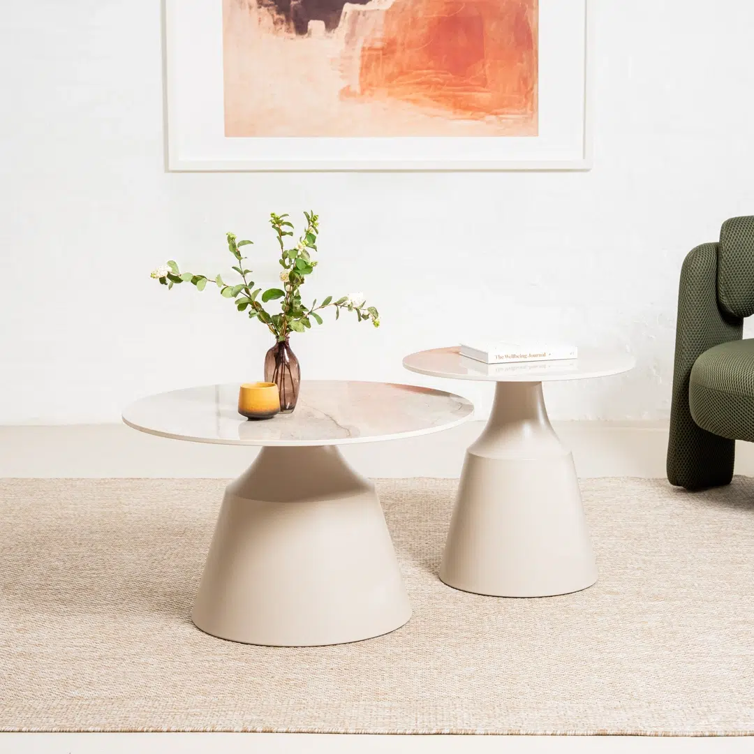 The Sahara Coffee Nest brings warmth and style to contemporary interiors. Its natural ceramic top features subtle textures and a marble-inspired finish, creating an inviting surface that complements a range of décor styles.