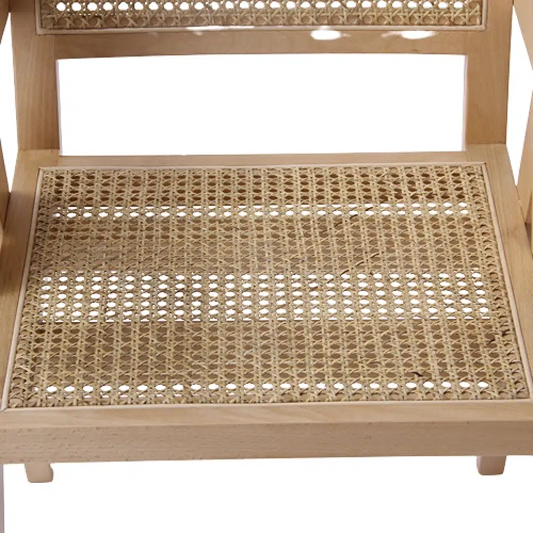 Constructed from solid beech timber and natural rattan, this chair combines strength with organic texture. The smooth, natural wood finish highlights the material’s grain, while the woven rattan backrest adds depth and artisanal craftsmanship to its aesthetic.