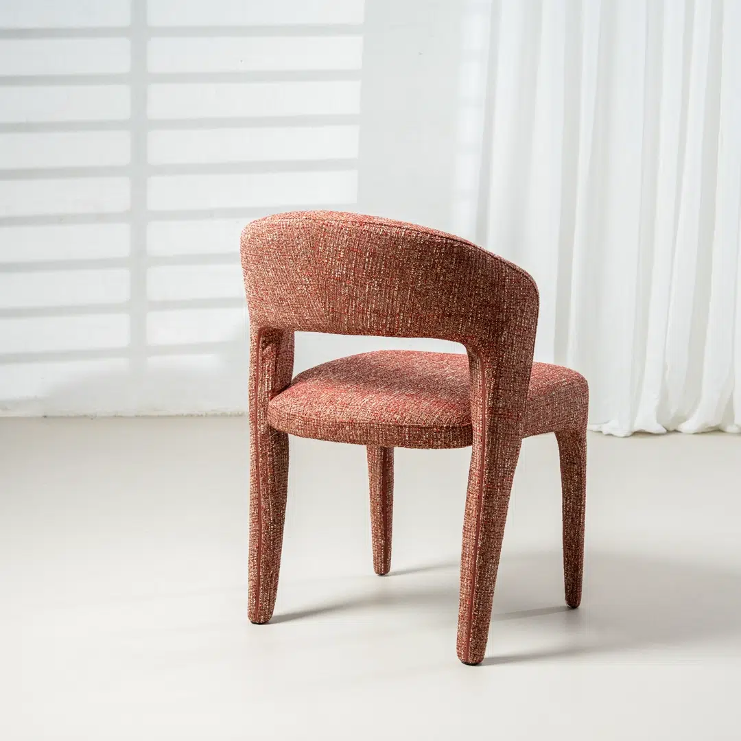 Wrapped in Sunset textured plain fabric, the chair balances softness with resilience, resisting everyday wear while maintaining a plush feel. This high-quality material is easy to maintain—simply wipe with a dry cloth to keep it looking pristine without the need for deep cleaning, perfect for busy households or high-traffic dining areas.