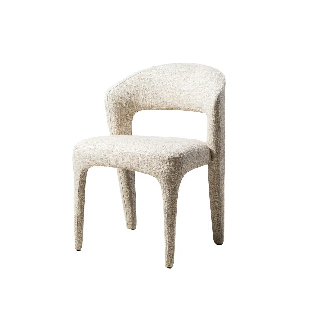 This dining chair blends sleek, modern design with enduring sophistication, featuring Wheat-colored textured upholstery that adds subtle warmth to formal or casual dining spaces. The clean lines and neutral tone create effortless versatility, making it a natural fit for contemporary homes or traditional interiors seeking a refined update.
