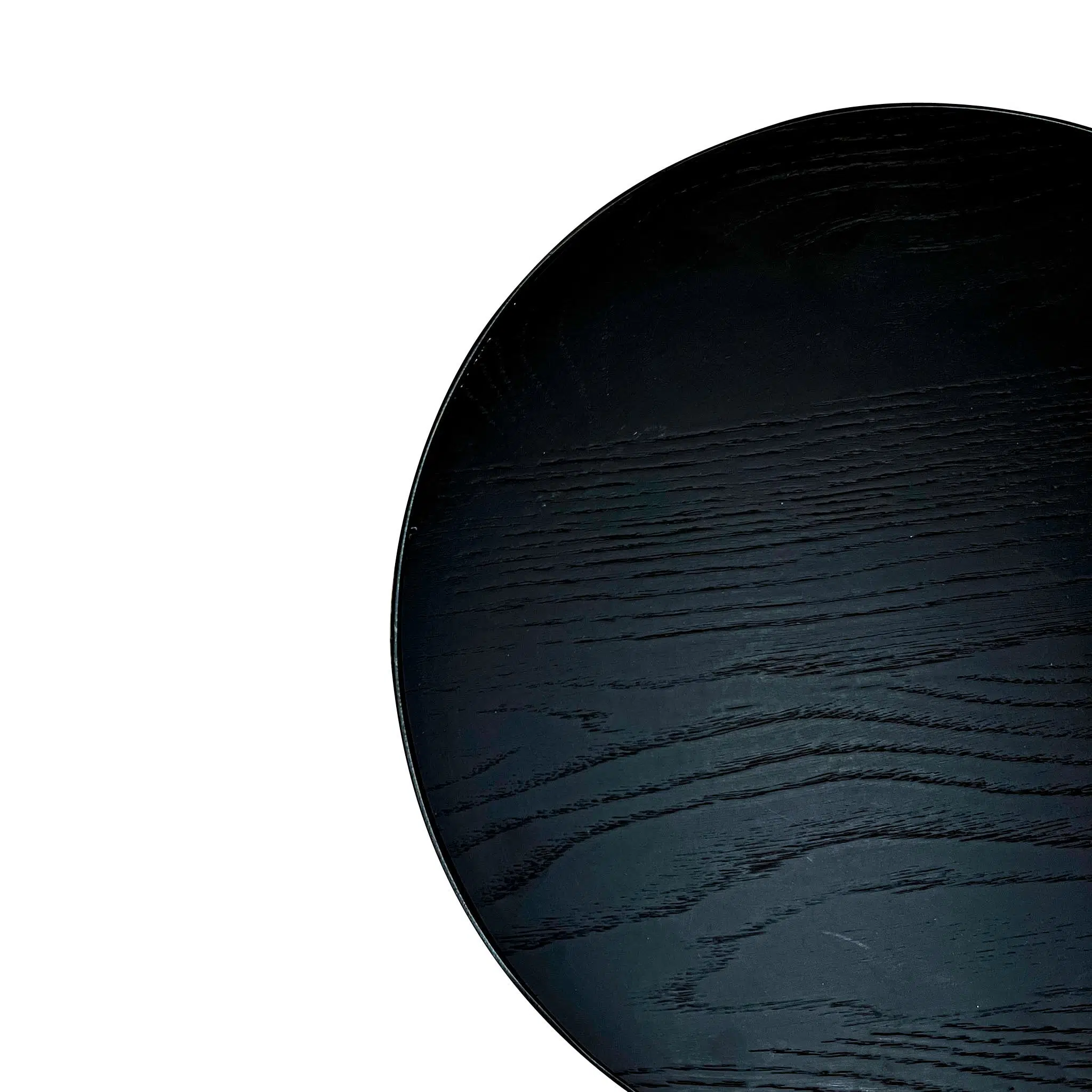 This compact side table redefines minimalist design with its striking black oak veneer surface and bold geometric silhouette. The seamless one-piece powder-coated frame merges industrial strength with contemporary aesthetics, creating a statement piece that balances artistic flair and functional practicality in any room.