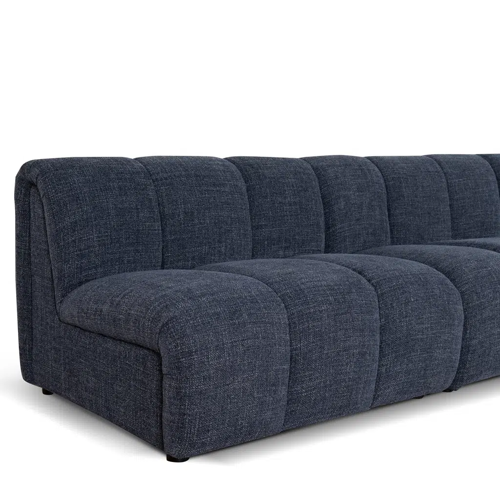 Built with structural integrity in mind, the sofa combines solid pine wood framing (209cm depth) with reinforced leg supports (77cm height). The navy blue polyester upholstery resists everyday wear while maintaining a sophisticated appearance. The entire system supports up to 800kg of weight, making it suitable for active households without compromising stability.