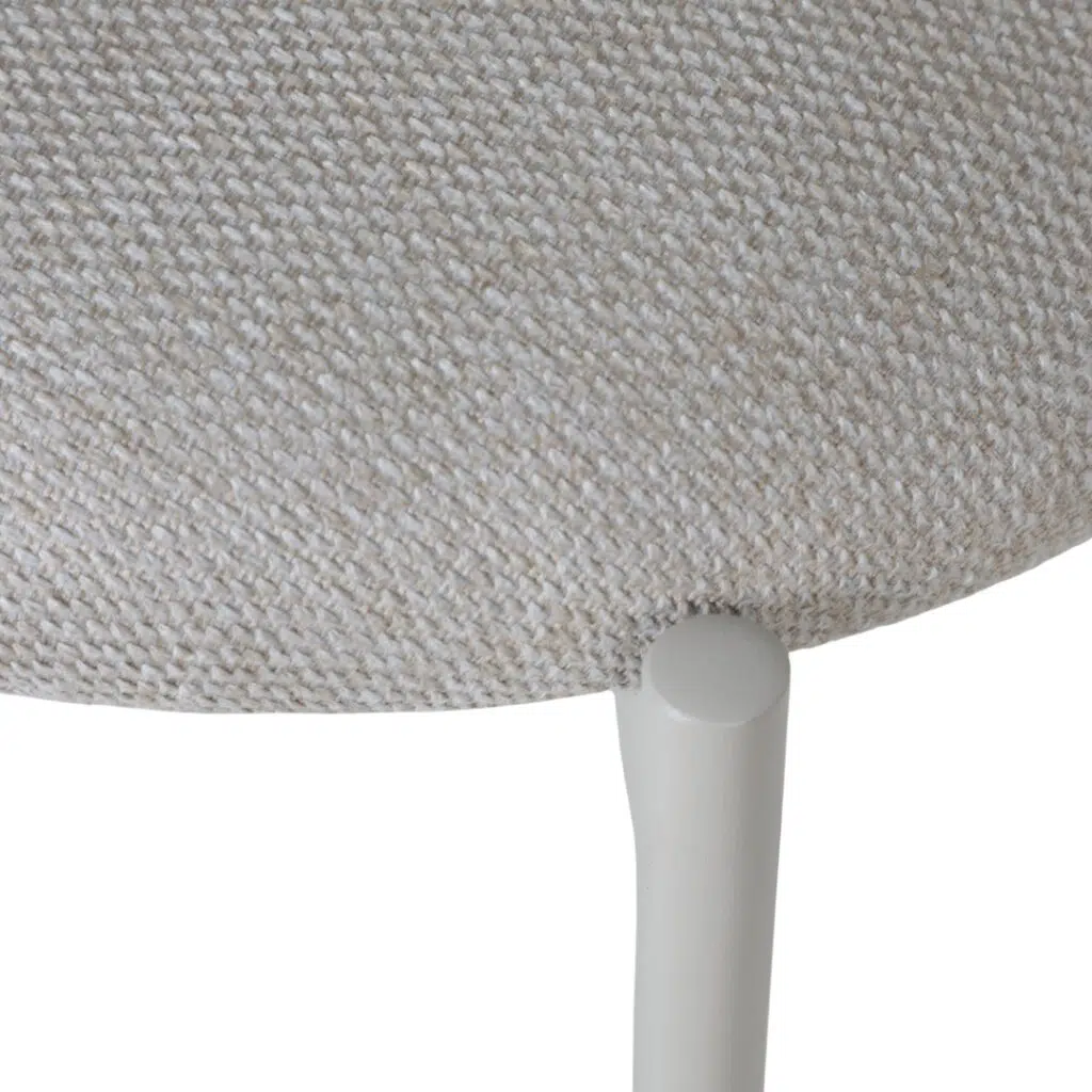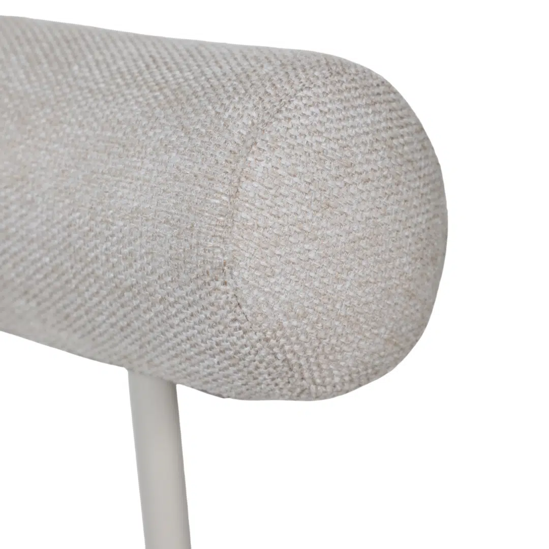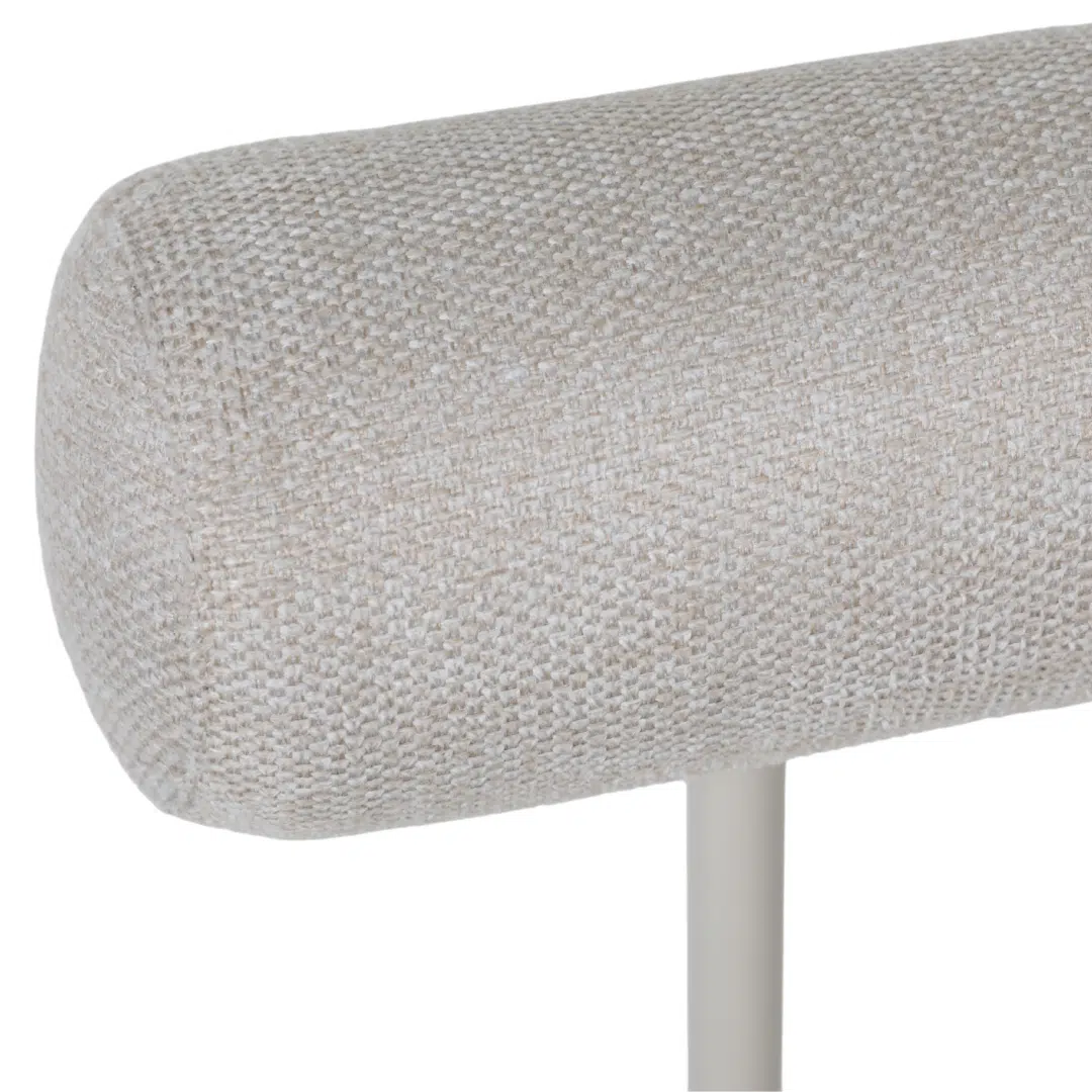 The Soren Bar Stool features a sturdy metal frame in all-beige, providing stable support and long-lasting durability while maintaining a cohesive, elegant look.