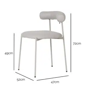 The Soren Dining Chair features a sturdy metal frame that provides reliable support and long-lasting stability, finished in an all-beige tone for a clean, cohesive appearance.