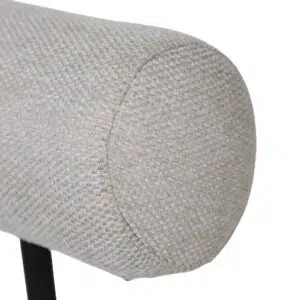 Upholstered in soft beige fabric, the chair offers a comfortable and supportive seating experience, perfect for long dining sessions.