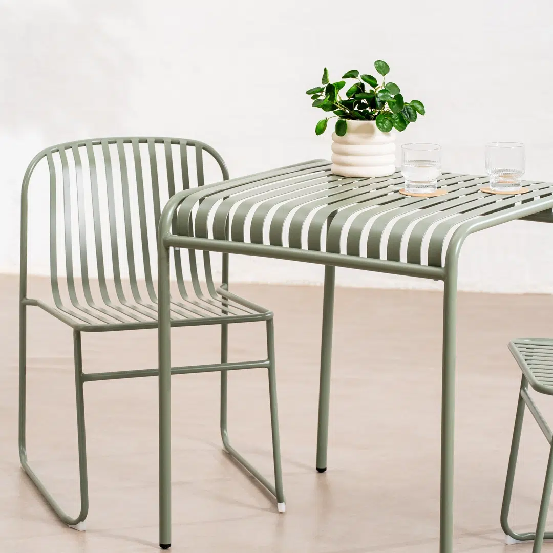 Each package includes 2 fully-equipped chairs with pre-assembled components, minimizing setup time while ensuring stability. The boxed dimensions (82cm height) protect contents during transit, guaranteeing arrival in perfect condition for immediate use. SEO Keywords: durable outdoor dining chairs | ergonomic steel frame | rust-resistant patio seating | weatherproof garden chairs | compact outdoor chair design | low-maintenance garden furniture | modern green patio chairs