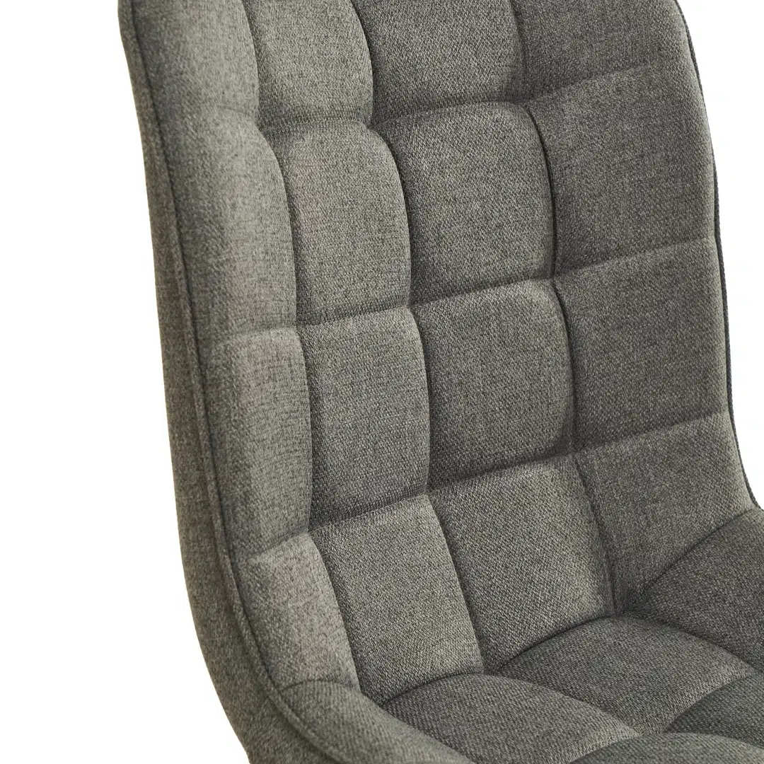 A delicate cross-stitch embroidery pattern subtly enhances the seat cushion, adding dimension without overwhelming the space. This understated design element catches light at different angles, creating dynamic visual effects that elevate the chair’s minimalist silhouette.