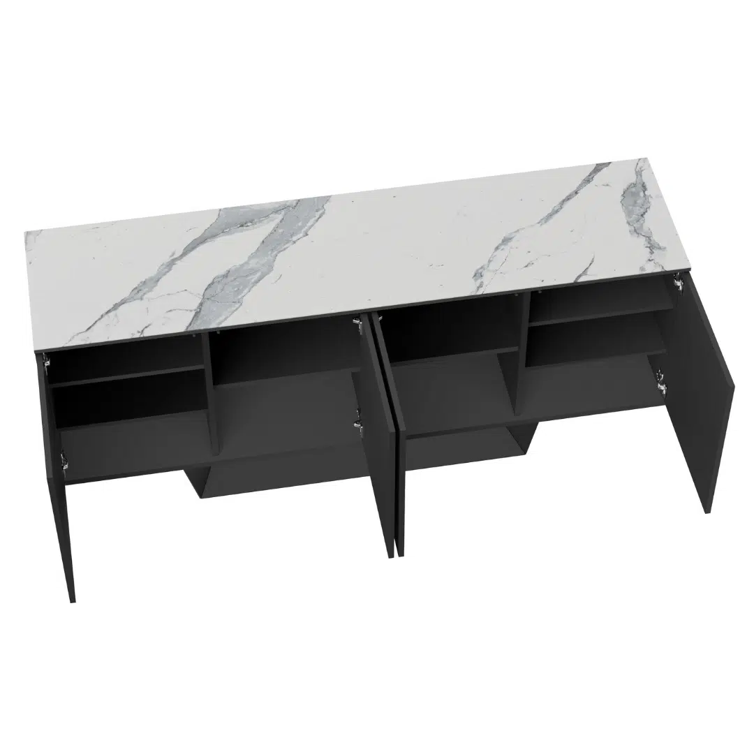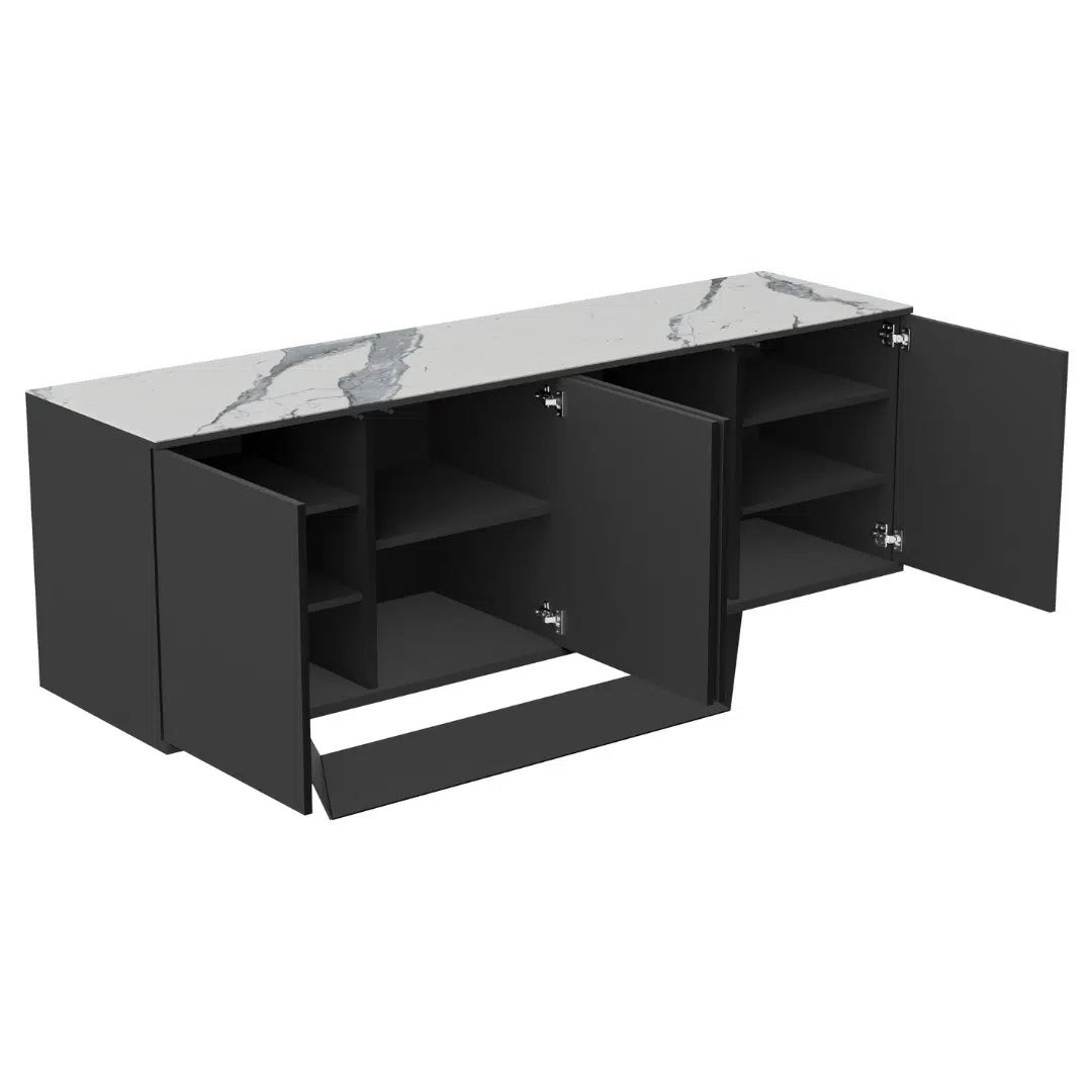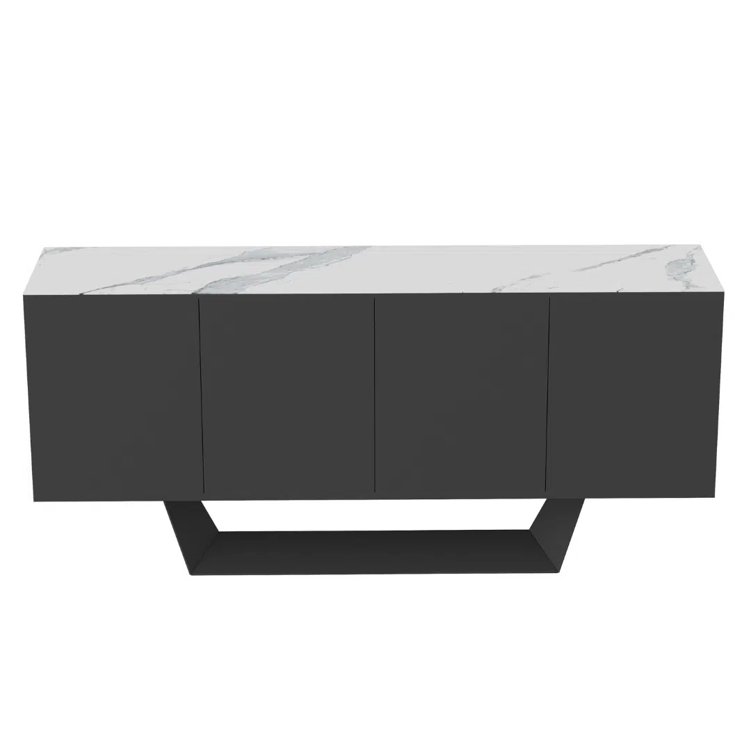 The Symphony Sideboard brings refined style and practicality to any contemporary home. Featuring a sleek matte ceramic top with a marble-effect finish, it pairs durability with timeless elegance. Its clean lines and contrasting black powder-coated frame create a striking focal point that complements both minimalist and modern interiors.