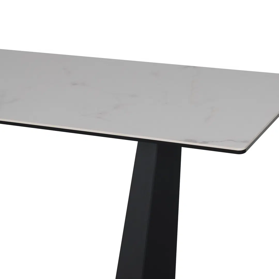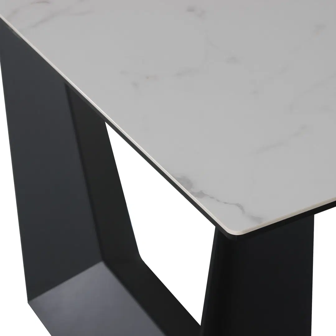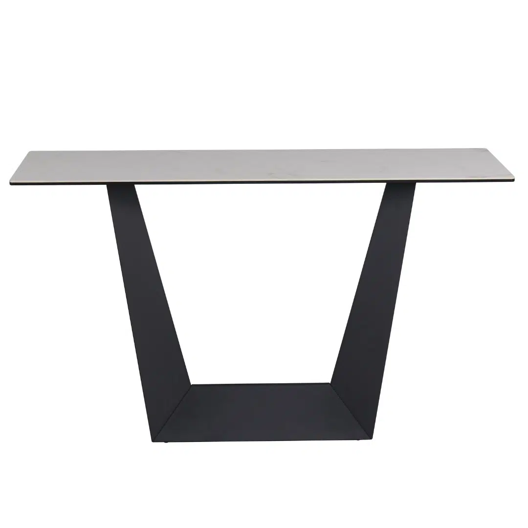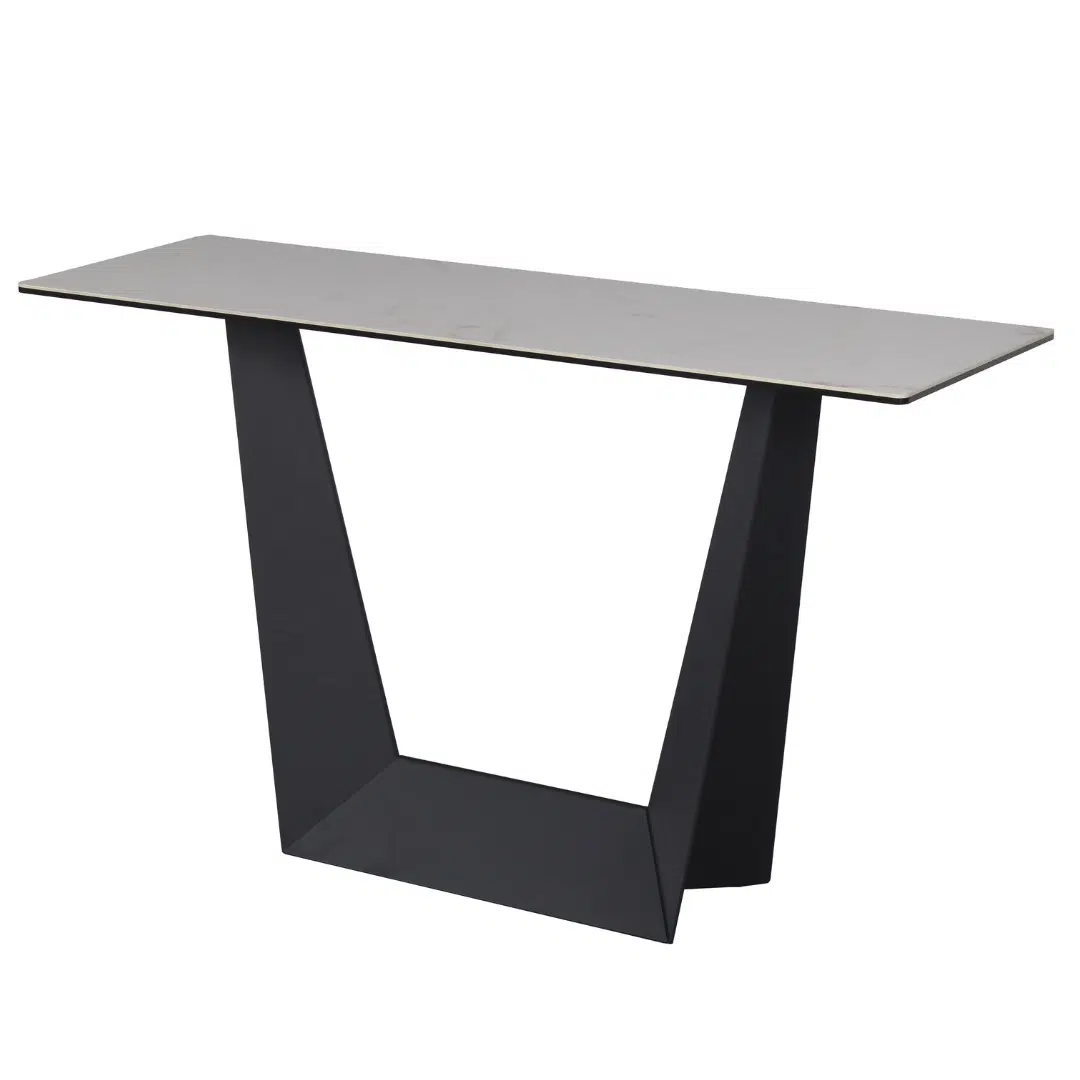 Crafted to elevate modern living spaces, this console table combines sleek aesthetics with enduring functionality. Its Marmo ceramic tabletop showcases a refined matte finish with subtle marble veining, while the streamlined black powder-coated metal frame adds architectural contrast. The minimalist silhouette ensures seamless integration into entryways, living rooms, or hallway settings, making it a versatile anchor for curated decor or functional organization.