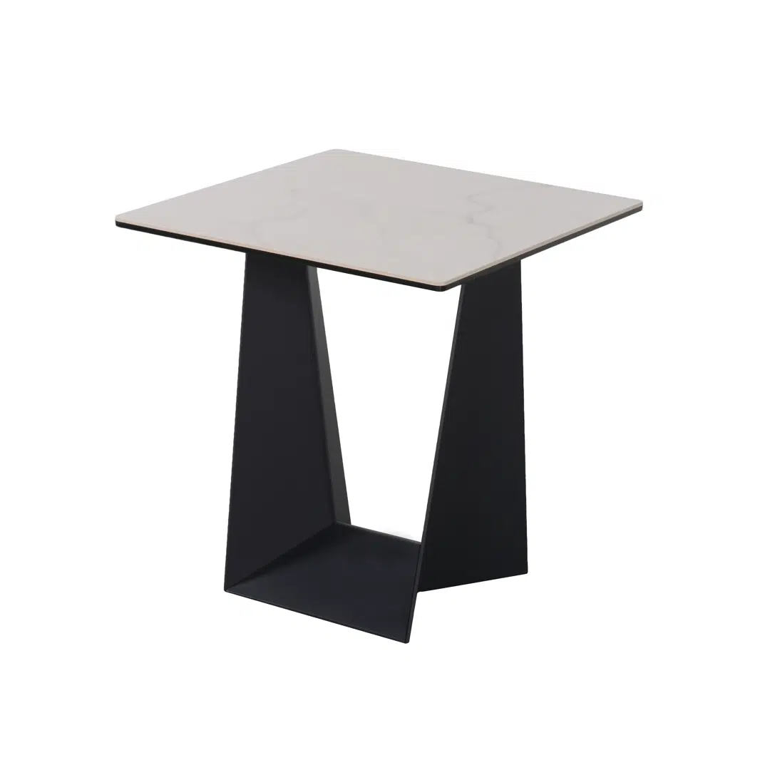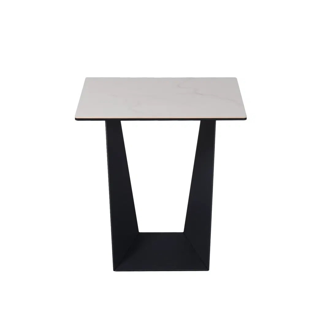 This end table combines sleek aesthetics with functional elegance, featuring a smooth Marmo ceramic surface that mimics the luxurious veining of natural marble. The scratch-resistant and heat-resistant top effortlessly integrates with a minimalist black powder-coated metal frame, creating a cohesive design that elevates modern living rooms, bedrooms, or office environments.
