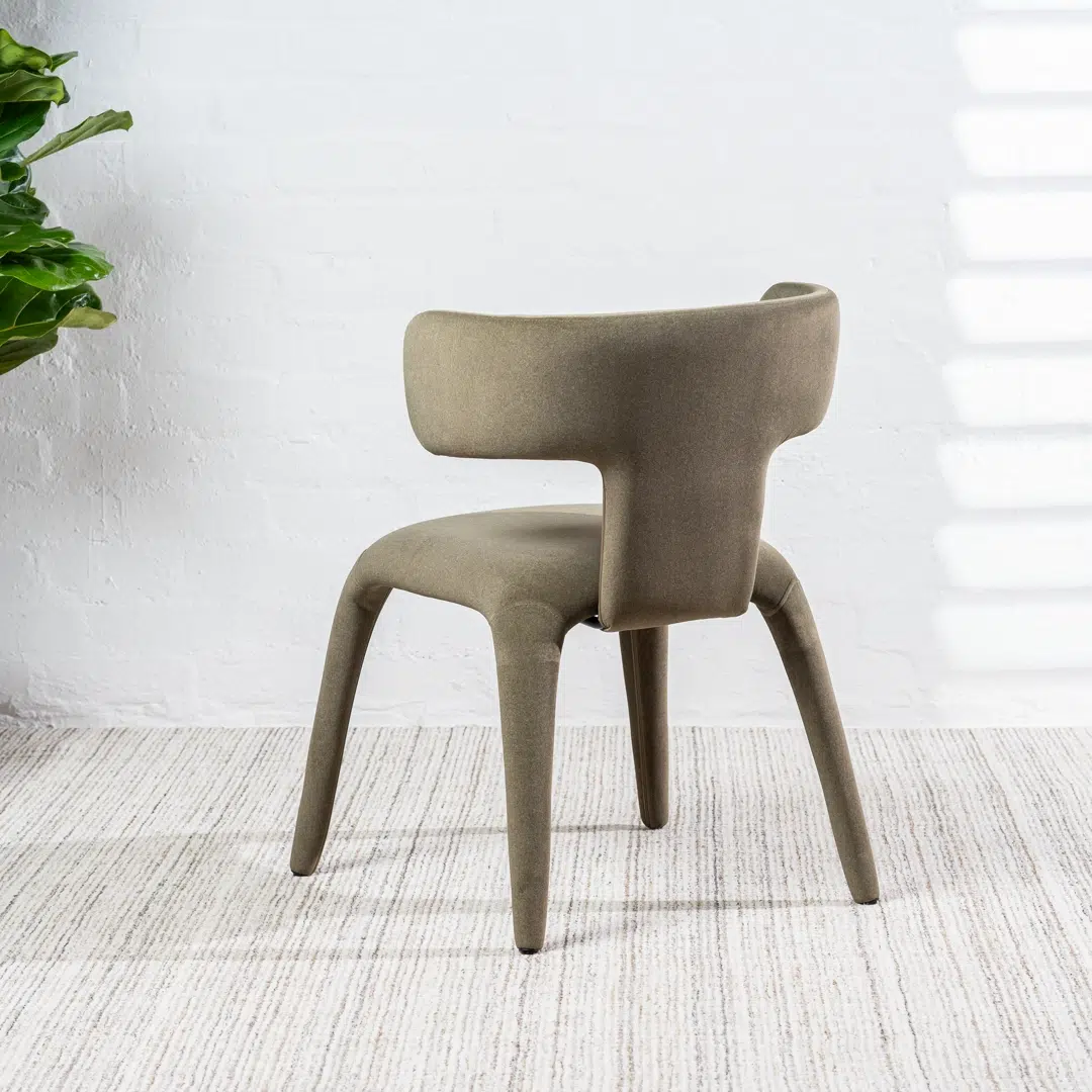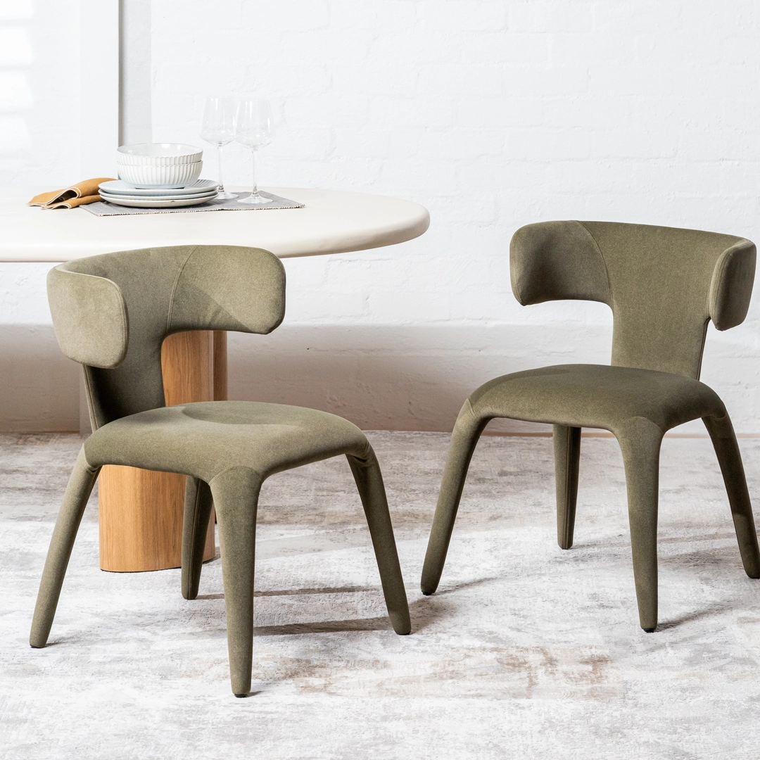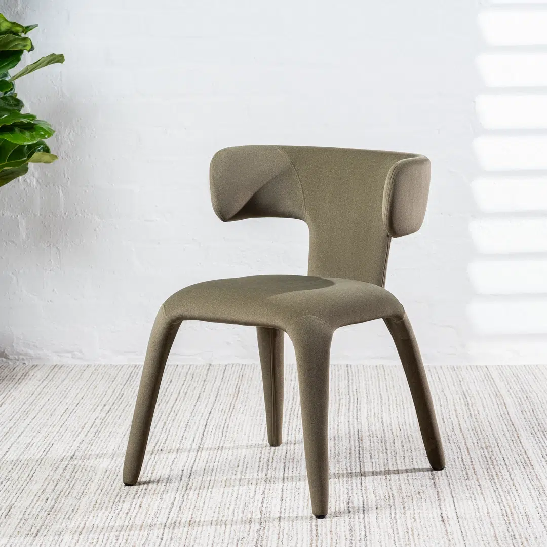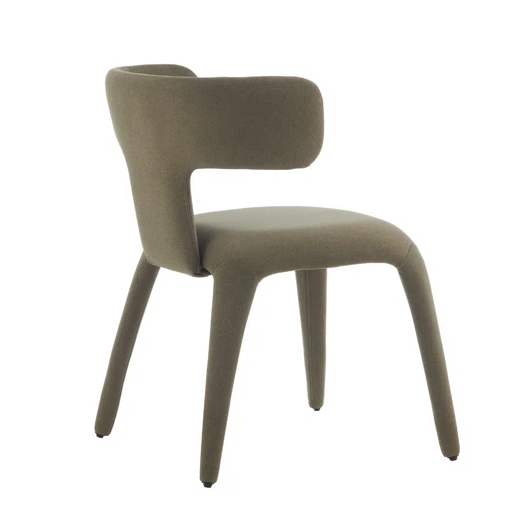 The Leaf-coloured Taurus dining chairs combine vibrant tonal contrast with plush ergonomics, instantly revitalizing modern dining spaces. Their sculptural silhouette merges bold visual impact with a soft, inviting profile, creating an ideal balance between artistic flair and everyday usability.