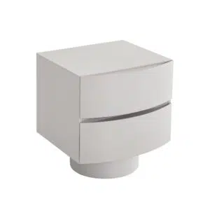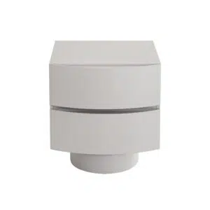 | Features: | Sculptural silhouette with curved drawer fronts, handle-free design, bold cylindrical pedestal-style base, seamless drawer grooves, two spacious drawers |