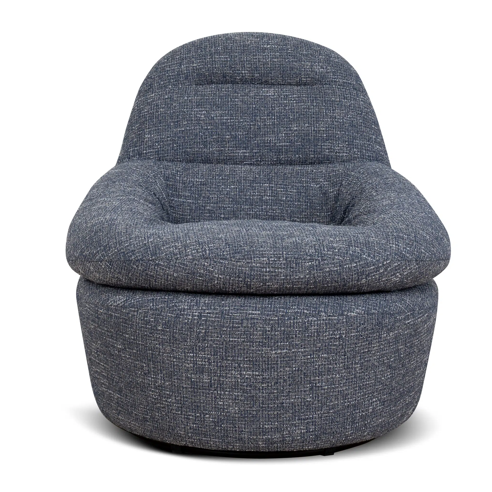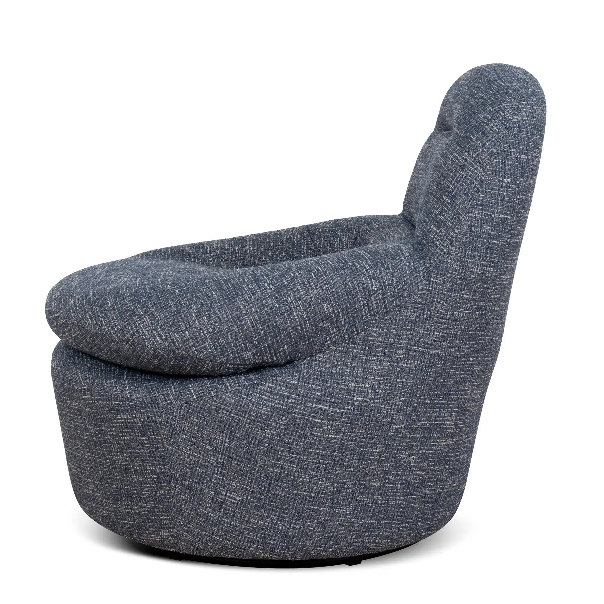 Thoughtfully crafted for maximum support, this swivel lounge chair in rich Prussian blue offers a plush seat designed to cradle your body after a demanding day. The seamless swivel functionality allows effortless movement, transforming it into the perfect spot for unwinding, reading, or enjoying a cozy movie night.