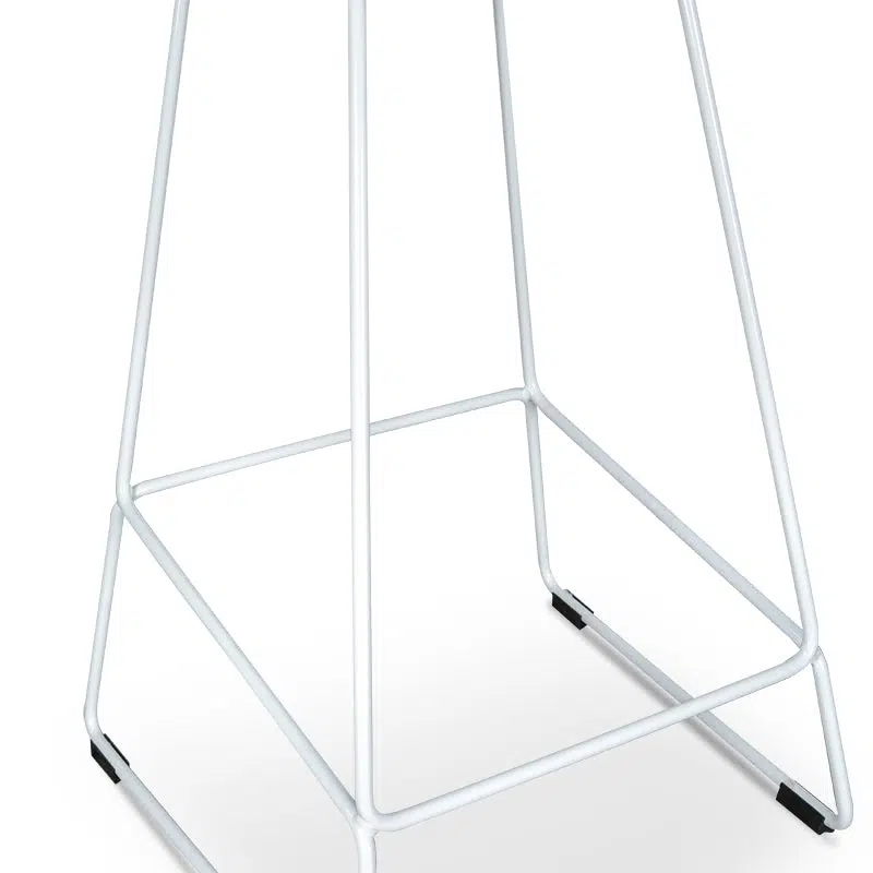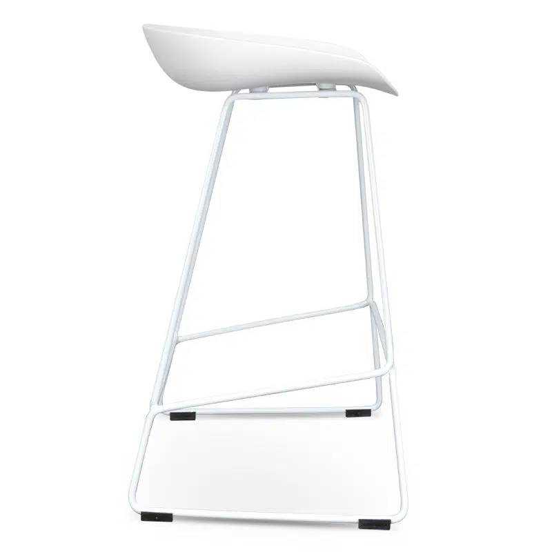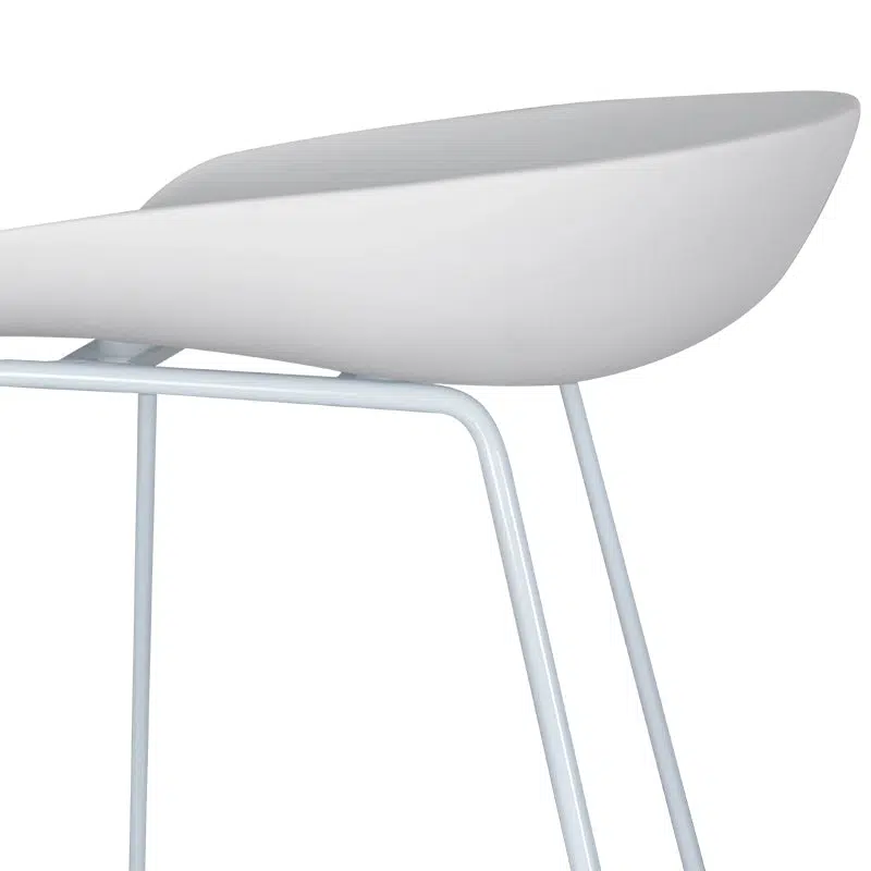 This bar stool features a minimalist silhouette with a monochromatic white finish that seamlessly integrates into any contemporary space. The white metal legs add a touch of sophistication while maintaining a clean aesthetic, making it an ideal choice for kitchens, cafes, or dining areas where modernity meets functionality.